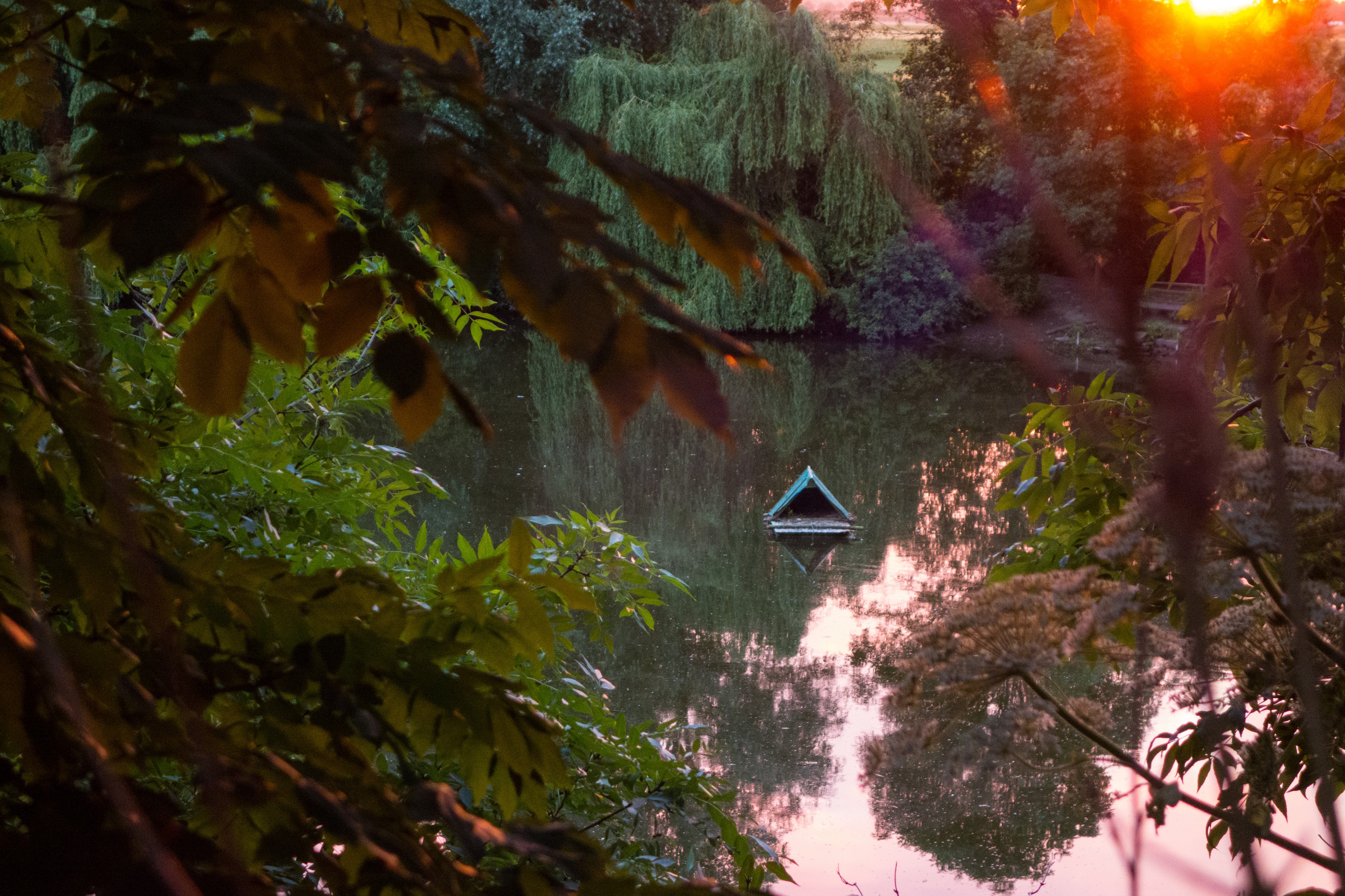 A duck house resting peacefull in a private lake, nearby the village "Waarde" in the Netherlands