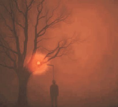 A strange red light shone through the branches.
