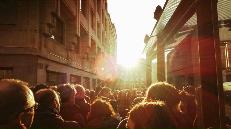 Deze foto is genomen bij Brussel Centraal rond 17:00 op 22 maart 2016. Ik werk in Brussel en was ook op de dag van de aanslagen in de stad. Een bizarre dag natuurlijk en het was maar de vraag hoe ik thuis zou komen die dag aangezien de hele stad afgesloten was. Na 16:00 werden de stations weer geopend en bevond ik me tussen een paar duizend mensen, wachtend in de rij omringd door militairen, politie en rood wit afzet lint. Plotseling zag ik dit dus voro me en loest ik er een foto van maken... goed gelukt en gaf mooi weer hoe het voelde daar te staan.