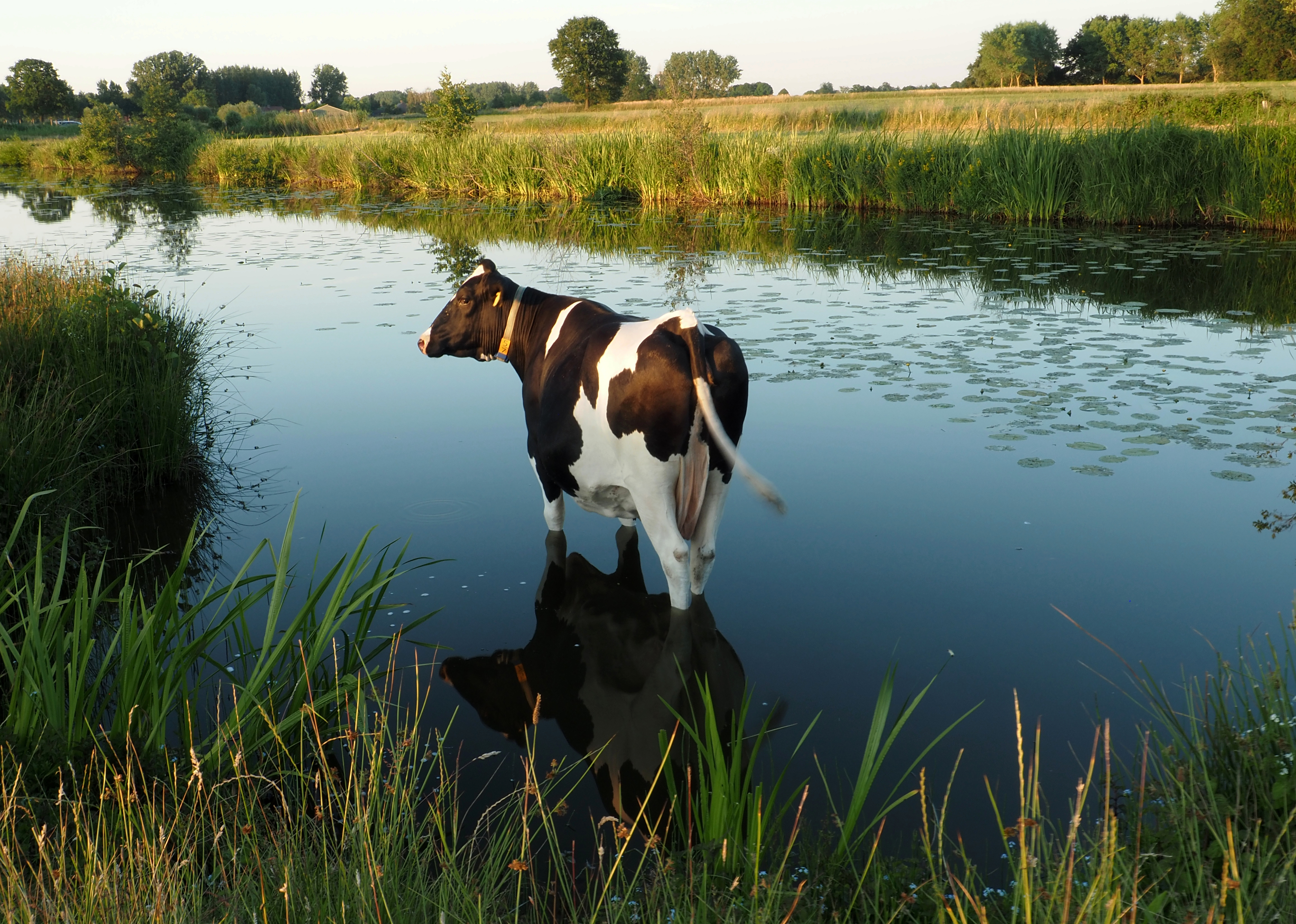 Koe in water was warm weer