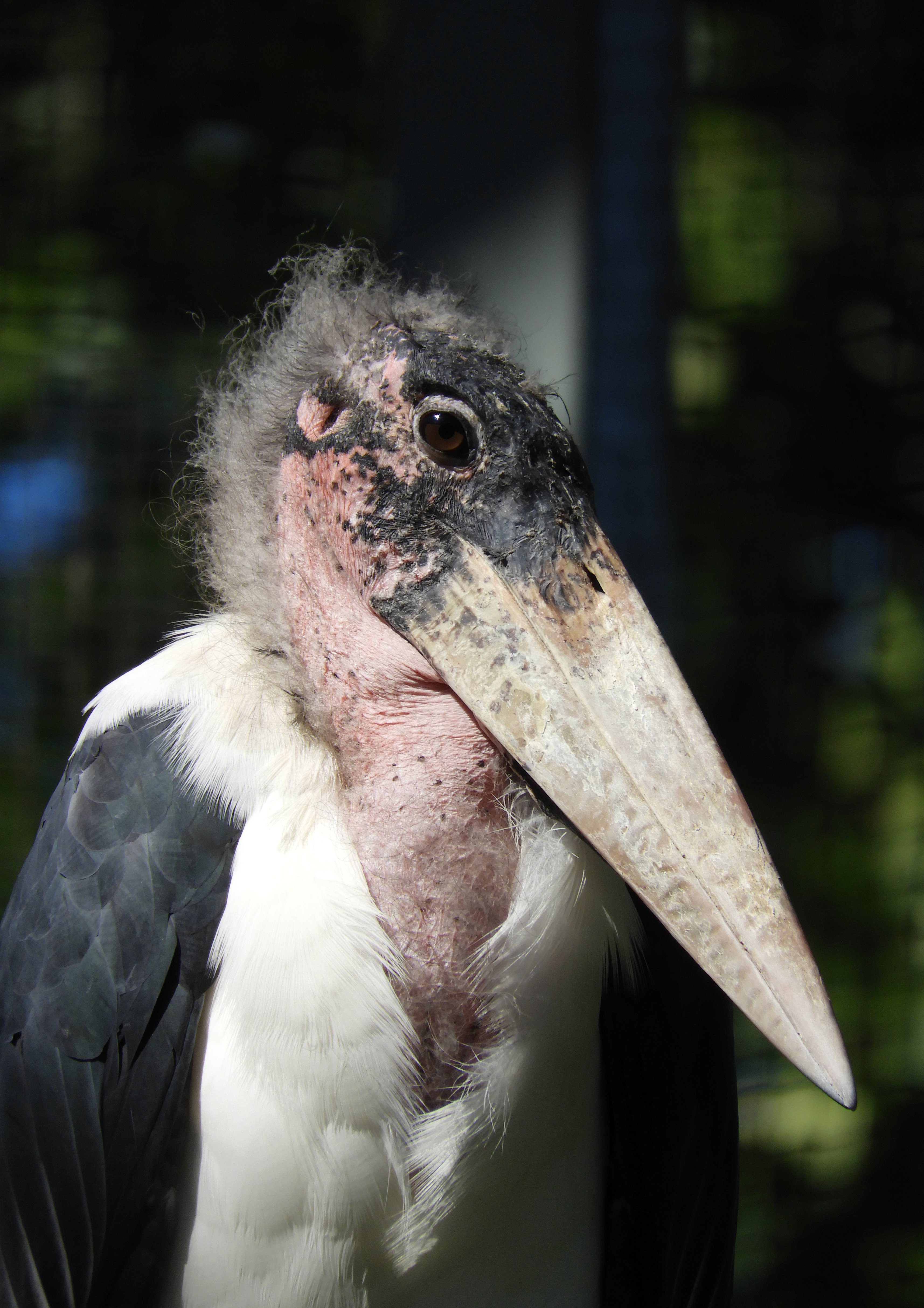 Deze standvogel heeft een vrijwel kale, vuilroze kop met een hangende krop, een grote gelige snavel, zwarte vleugels en staart en een grijszwart en wit lijf. In tegenstelling tot andere ooievaars vliegen zij met ingetrokken hals. De naakte halszak is met lucht gevuld en verbonden met de neusholte. Ze hebben een vleugelspanwijdte van ongeveer 2,60 meter. De lichaamslengte bedraagt 120 tot 150 cm en het gewicht 5 tot 9 kg.