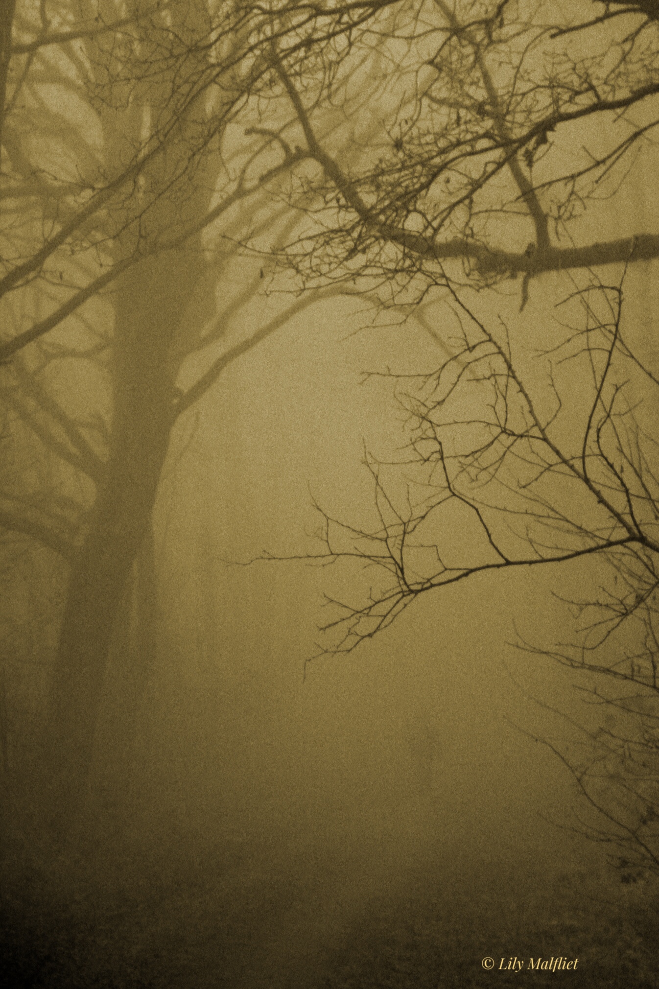 Op een mistige vooravond gingen we in ons straatje nog even een luchtje scheppen. Een eind voor ons liep een wazige gestalte. Leek heel eenzaam en alleen, ook door het weer natuurlijk.