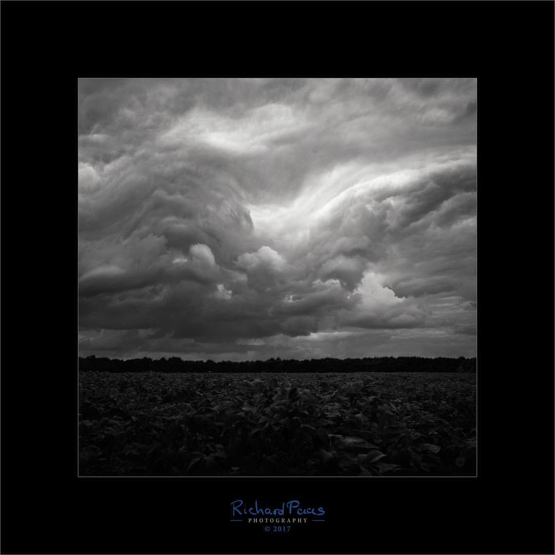 Op de terugweg van mijn werk reed ik langs mijn vaste route en was verbaasd over de prachtige dramatische wolkenlucht. Ik zag het plaatje al helemaal voor me als foto. Ik kon haast niet wachten op het moment dat ik een vrij landschap voor me had. Tussen Anloo en Schipborg sprong ik uit de auto en maakte deze foto.