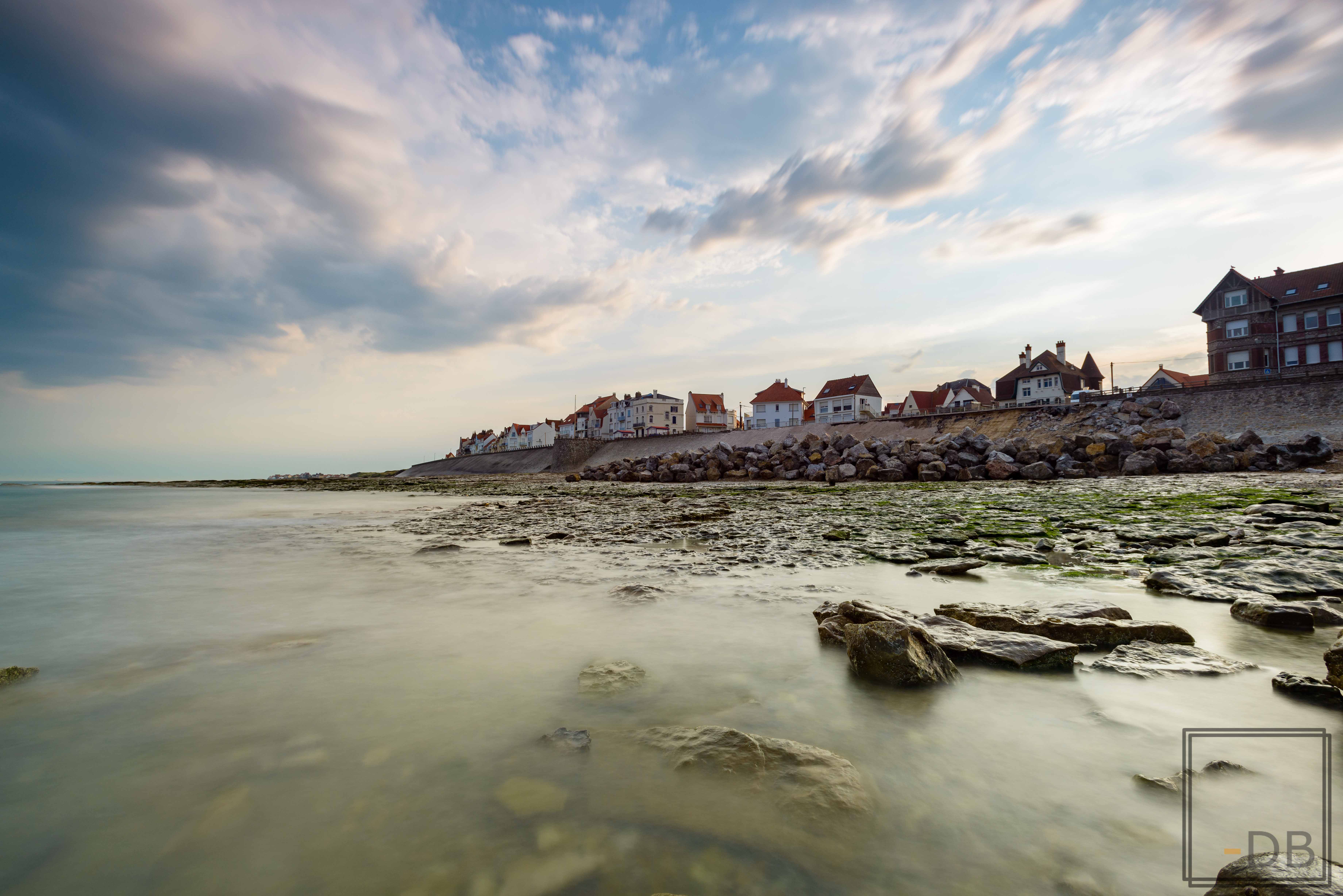 Zicht op het dorpje Ambleteuse tijdens de zonsopgang.