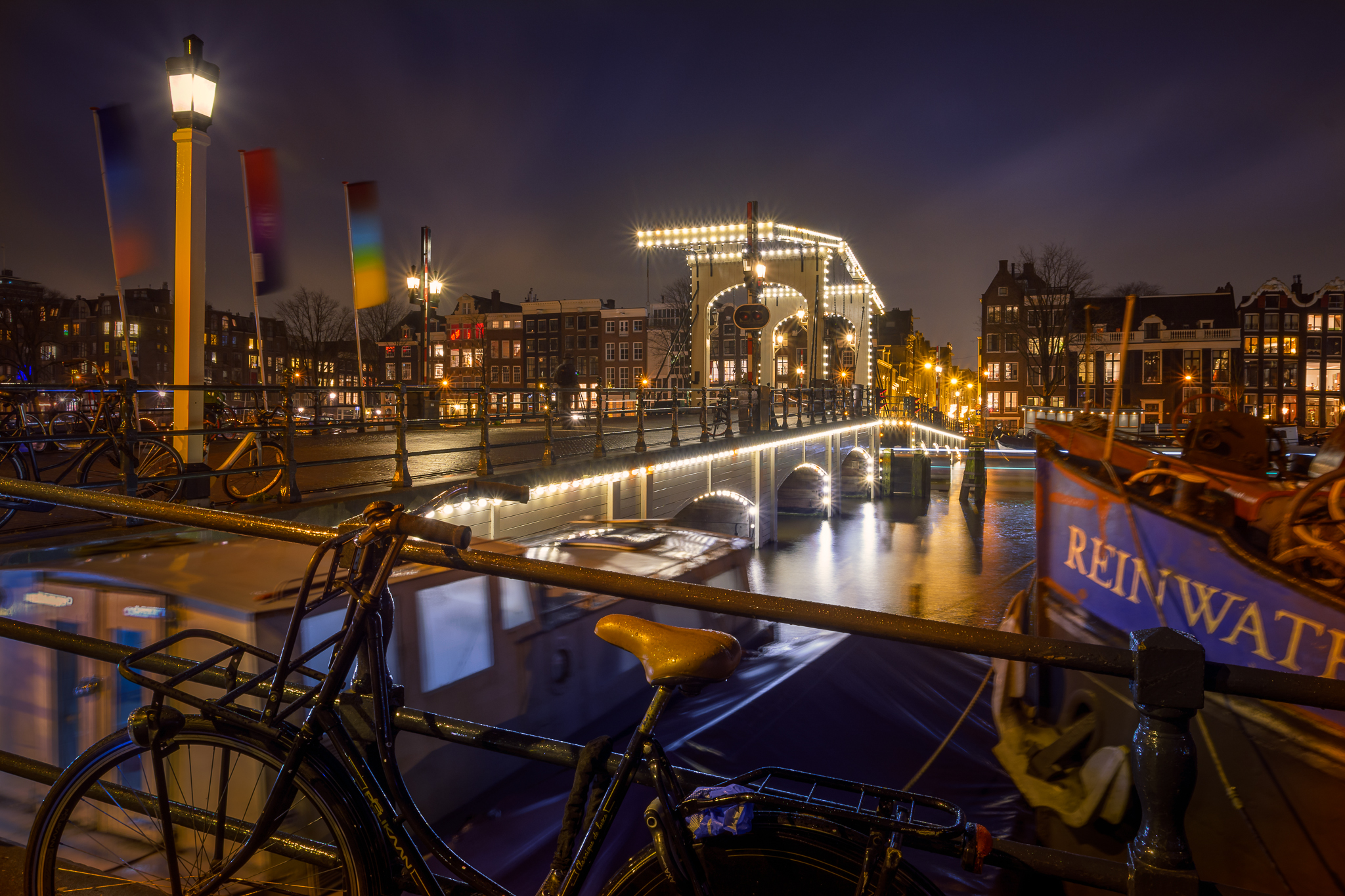Een van de meest gefotografeerde bruggen van Nederland de beroemde Magere Brug van Amsterdam. Het blijft een iconisch beeld met de verlichting van de brug op deze manier. Terwijl we zonder plan door Amsterdam aan het struinen waren kwamen we per ongeluk langs deze locatie en toen moest ik natuurlijk foto's nemen...