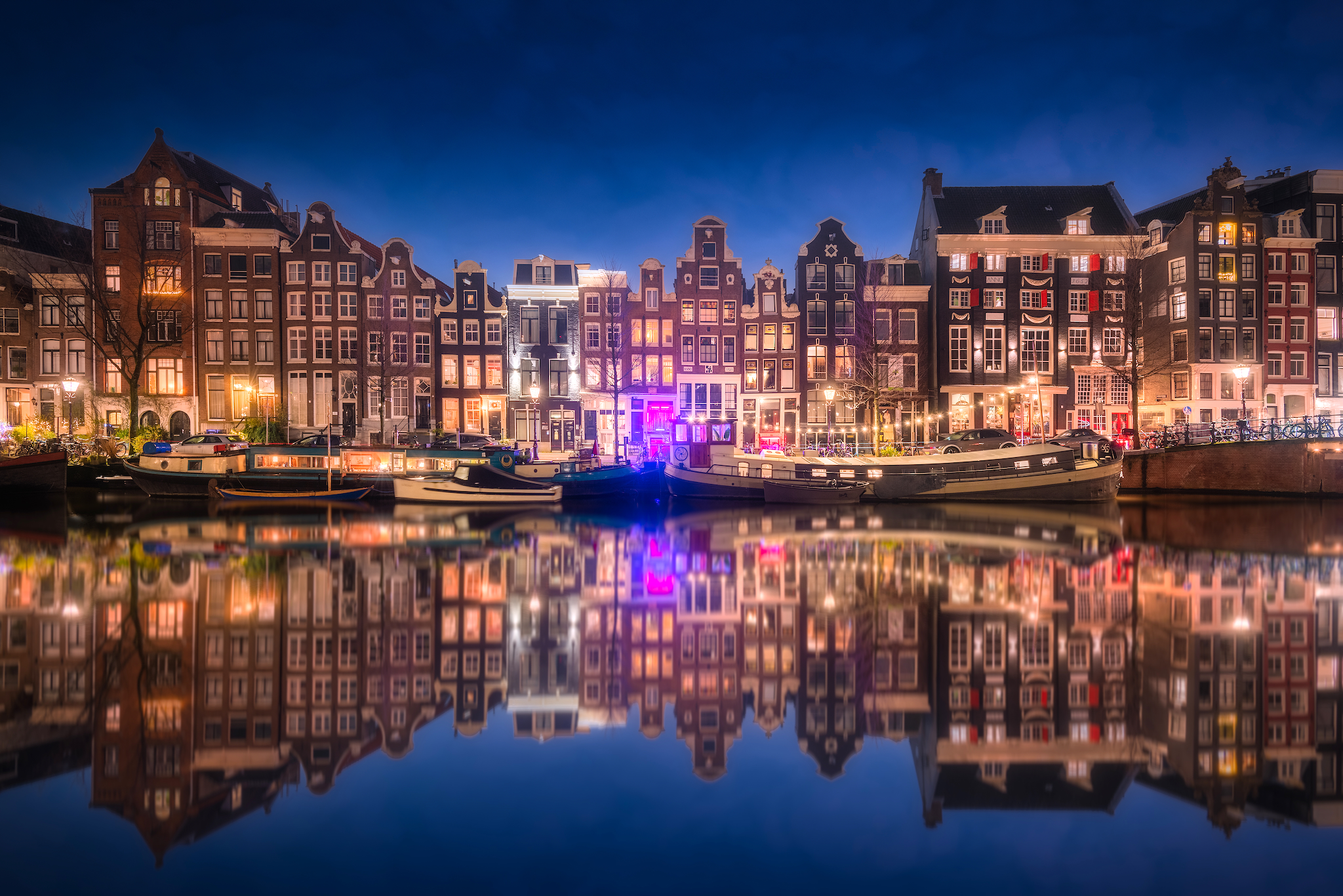 De Singel in Amsterdam tijdens het blauwe uur.