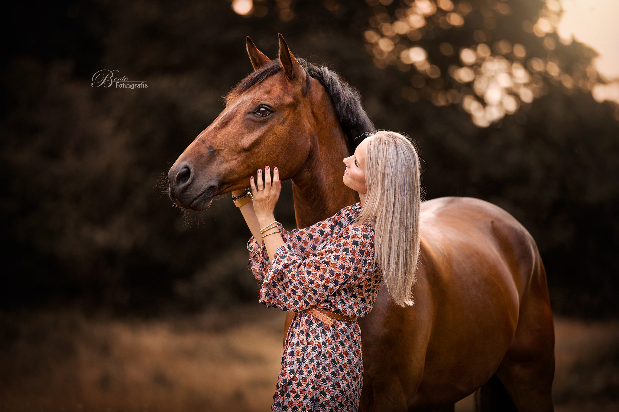 Anouk poseerde met haar paard Intro tijdens de zonsondergang <3