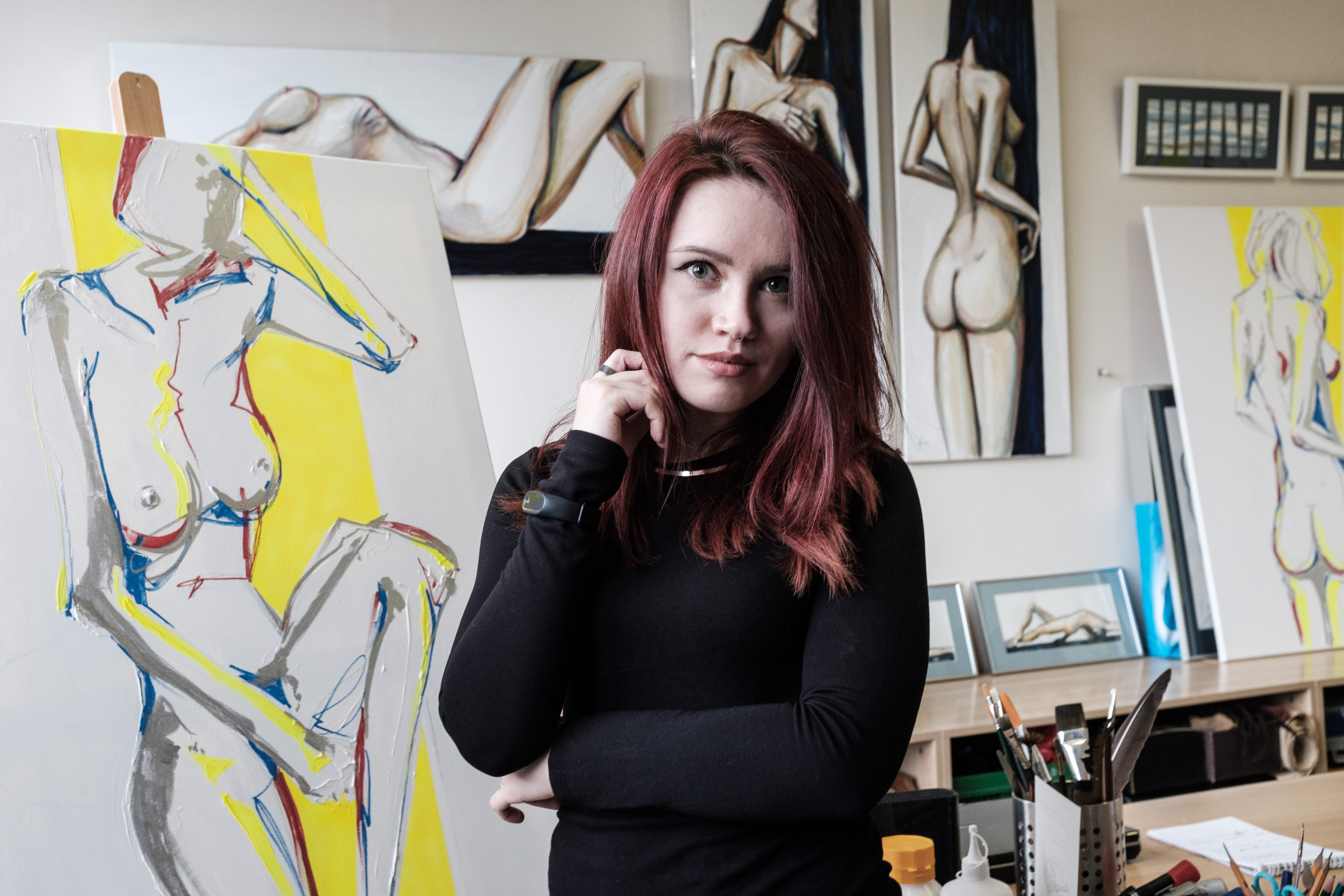 Artist Julia Filament in her art-studio