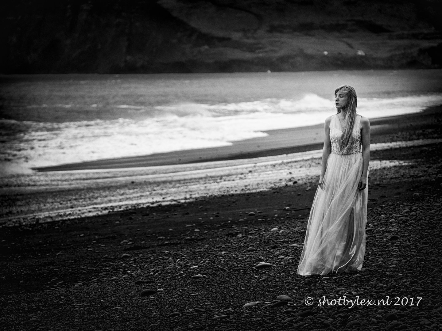 Reynisfjara, IJsland. Dit strand staat bekend om zijn gevaarlijke golven. Tevens is dit een veel genruikte filmlocatie. Zo ook deze dame. Dankzij het gebruik van een korte telelens kon ik haar mooi isoleren...