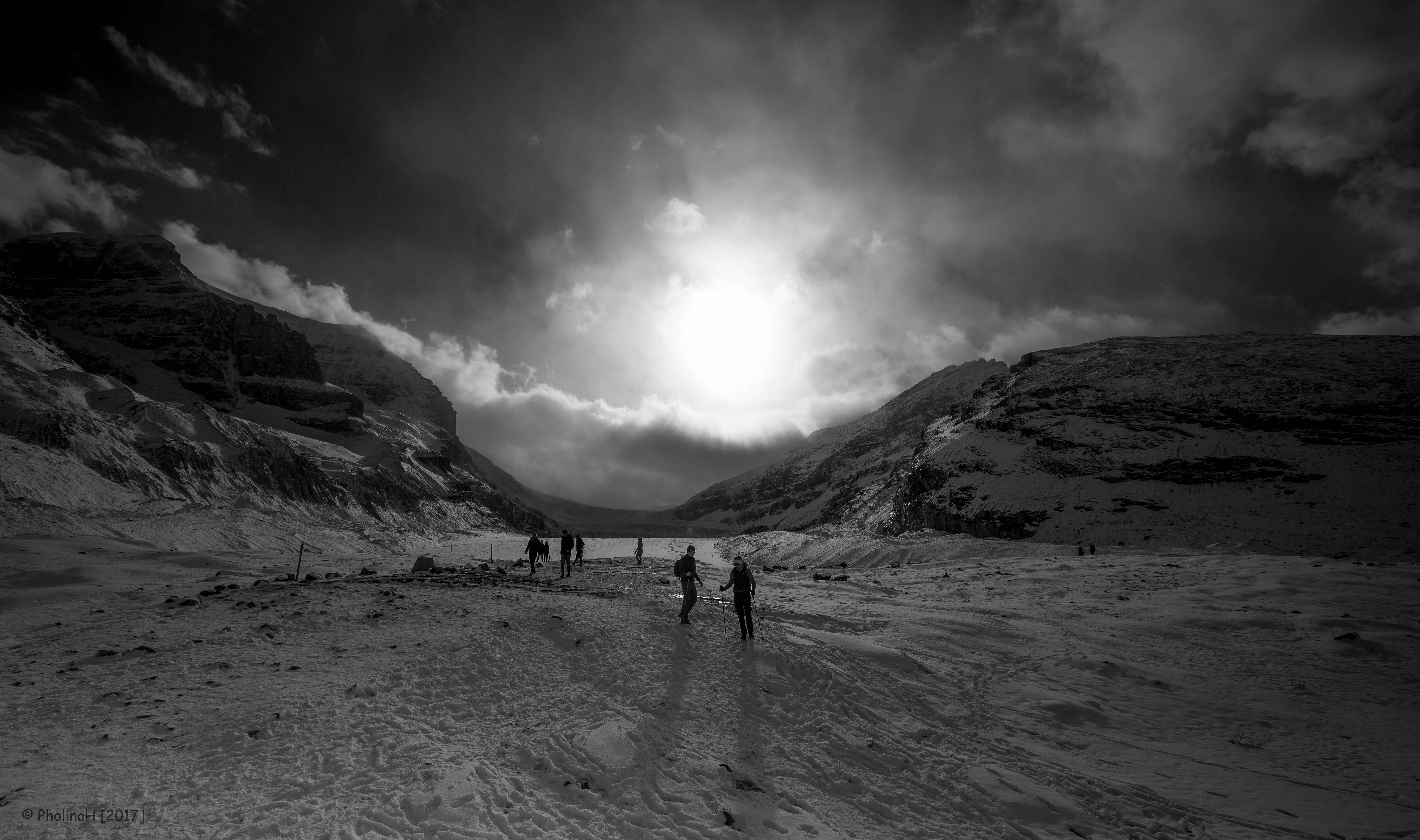 Hikers op de Athabasca Glacier, Columbia Icefield, Jasper National Park in Canada.