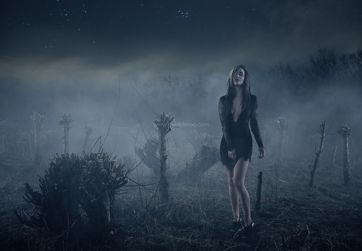 Misschien doet het beeld anders vermoeden. Deze opname is met ontzettend veel (sterke) lichtbronnen gemaakt. Juist om het licht evenwijdig te maken heb je afstand nodig. Sterke flitsers kunnen die afstand overbruggen. De mist is afkomstig uit een machine.