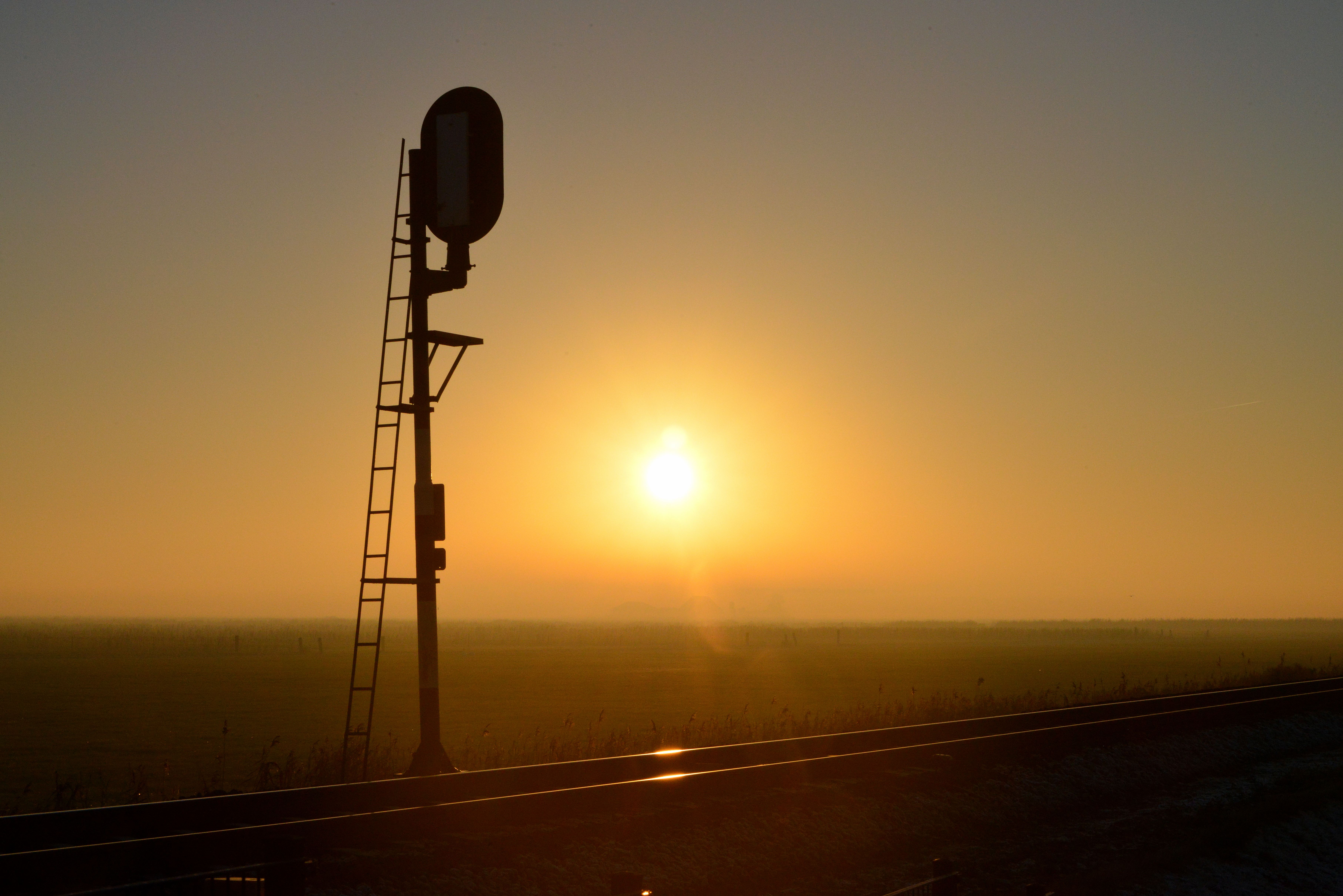 Avondzon over de spoorweg