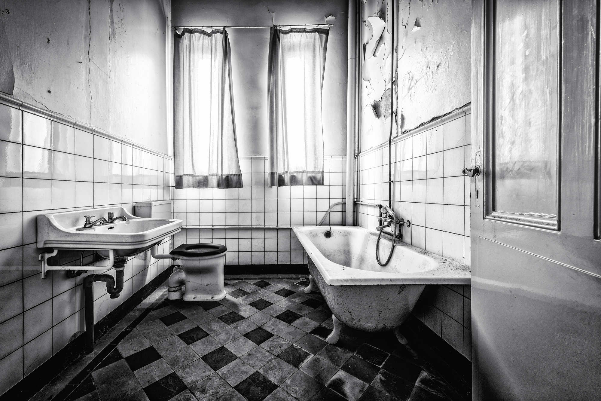 Deze foto is gemaakt in een oud verlaten monikenklooster. De detail's van deze badkamer komen goed tot zijn recht in deze foto.