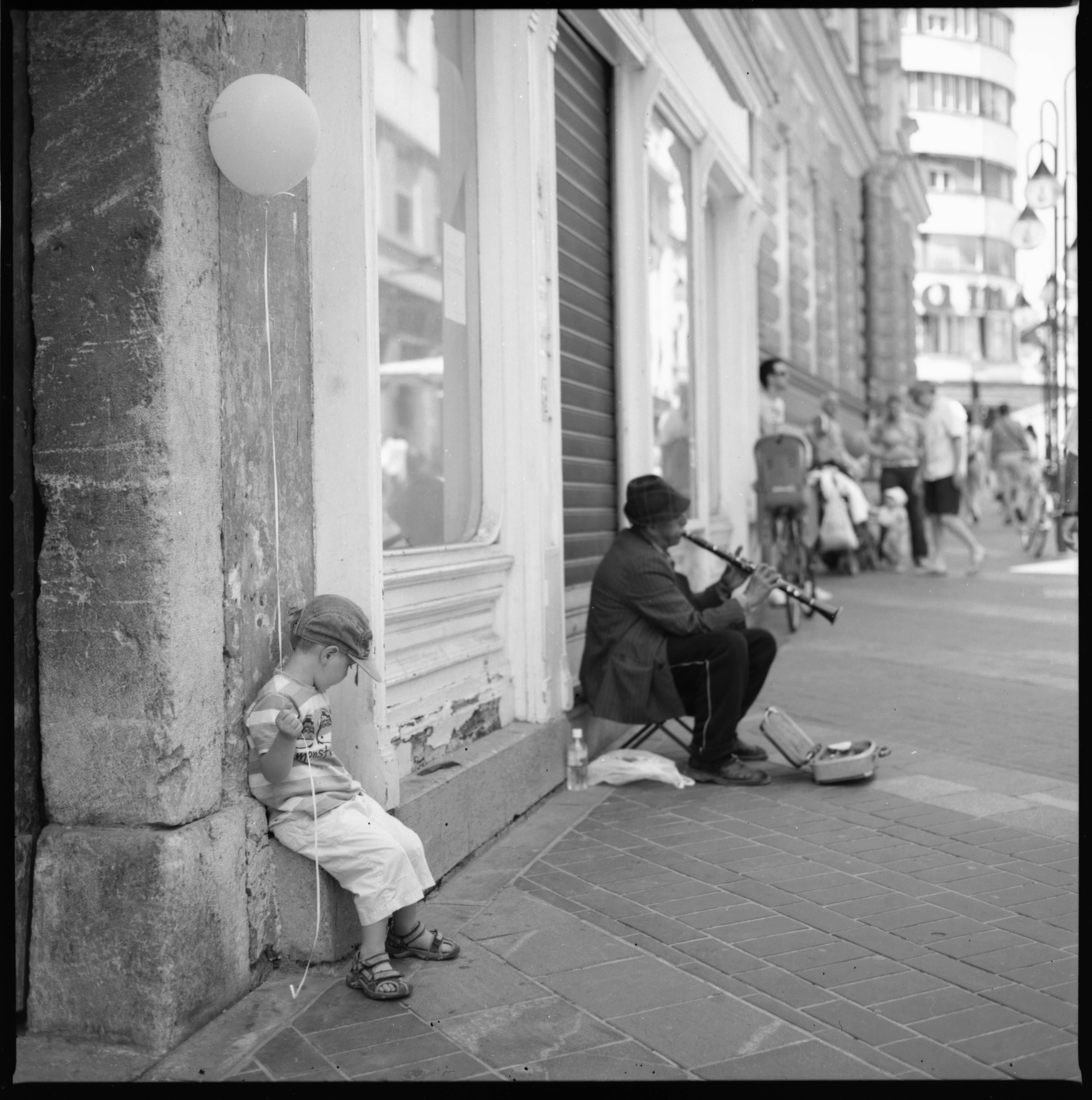 Ljubljana, de winkelstraat. Een jongetje staat hier te wachten tot zijn vader eens klaar is met winkelen. Hij heeft zijn ballon, maar waarom moet papa nog zo lang bezig zijn? De jongen wil wel weer naar huis.