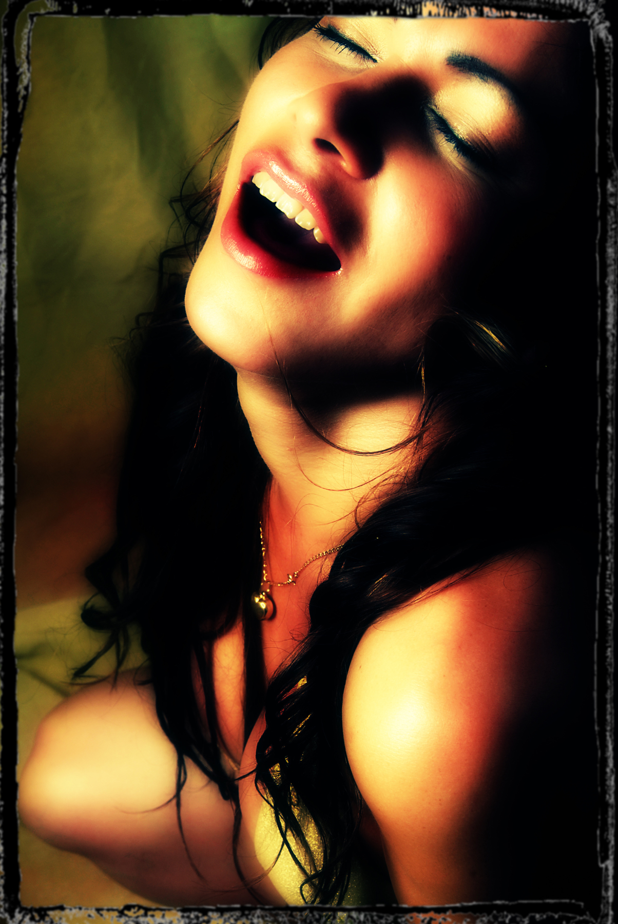 Licht erotisch getinte portretfoto, bewerkt als cross-over in photoshop.