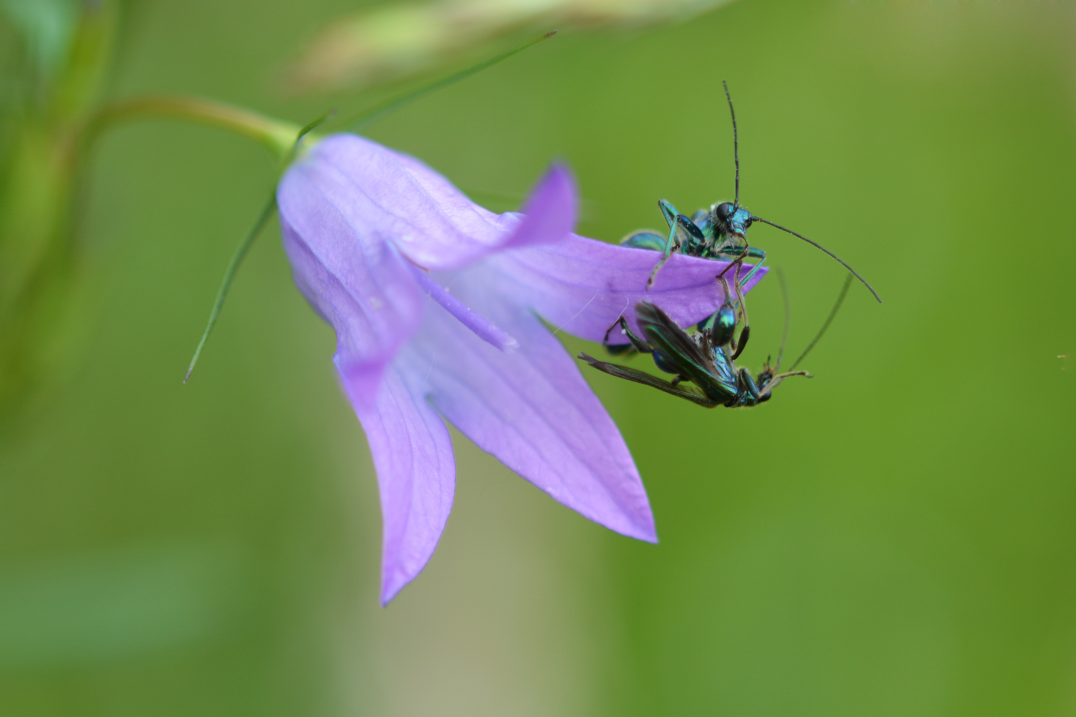 Two Swollen-Thighed Beetles, fighting for the flower.