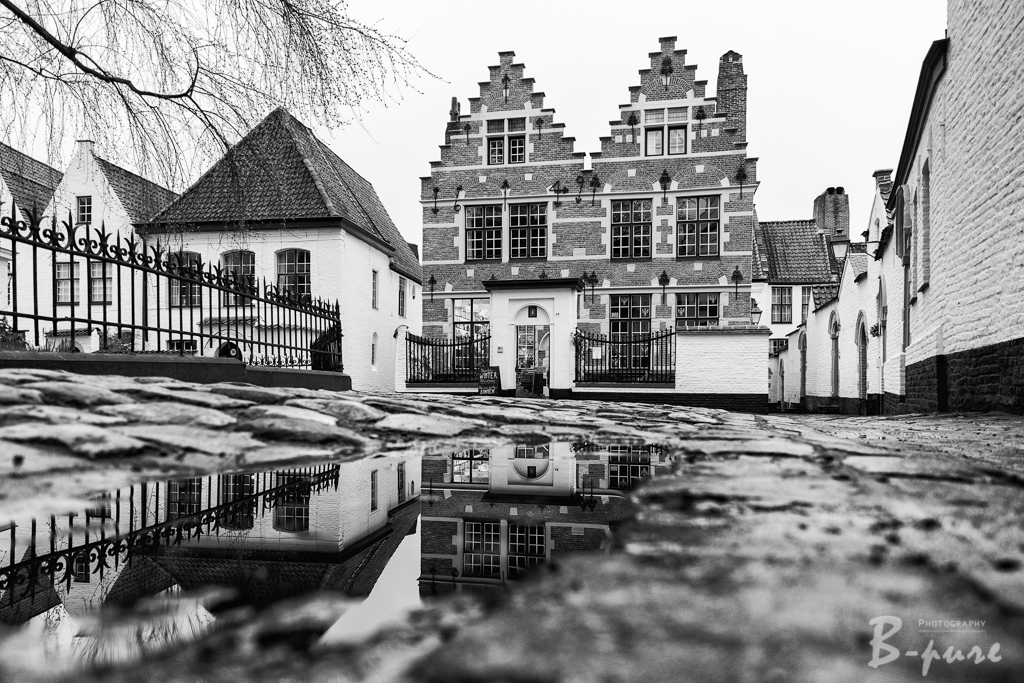Kikvorsperspectief van het begijnhof in Kortrijk (B)
