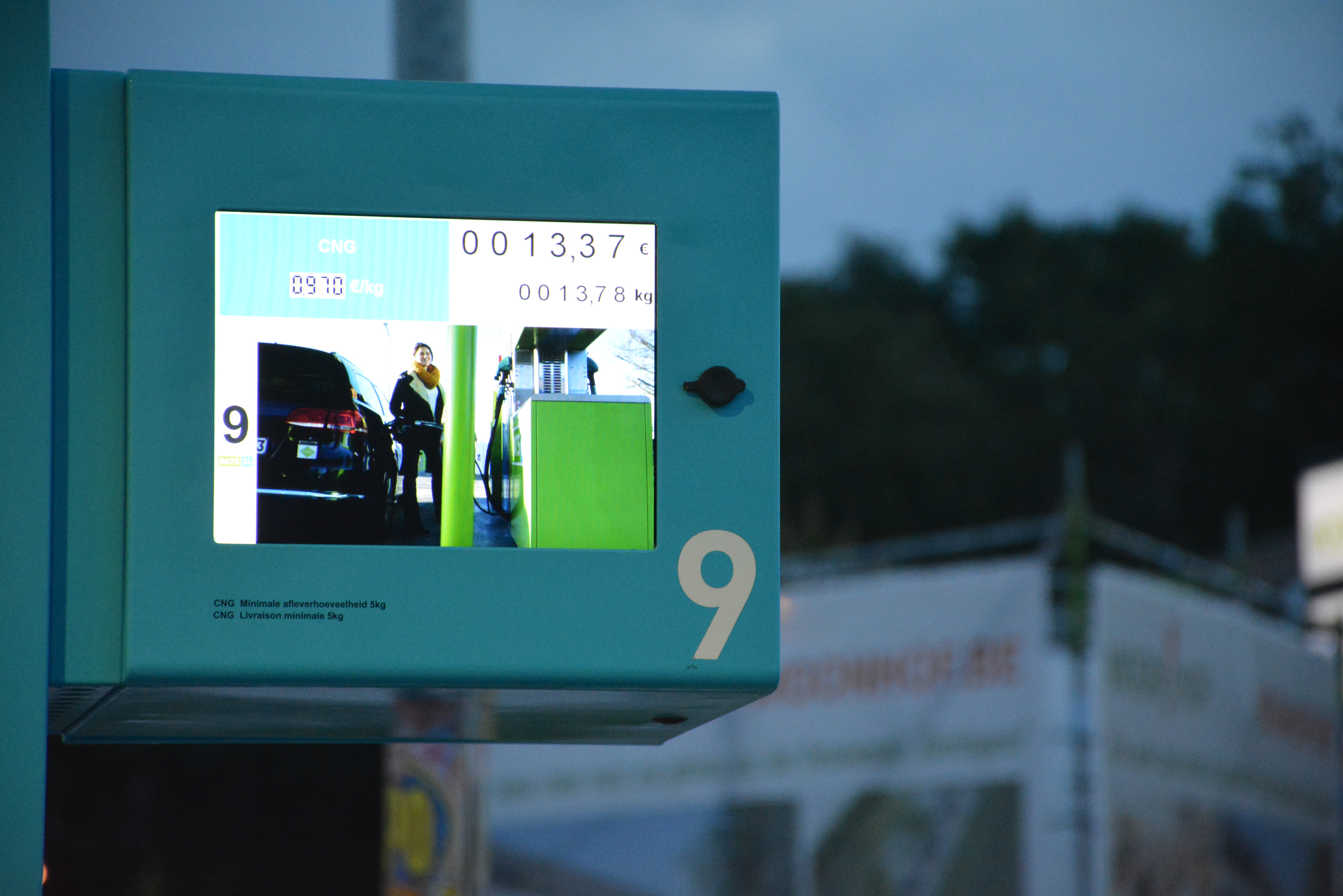 Bij tanken aan benzinestation .