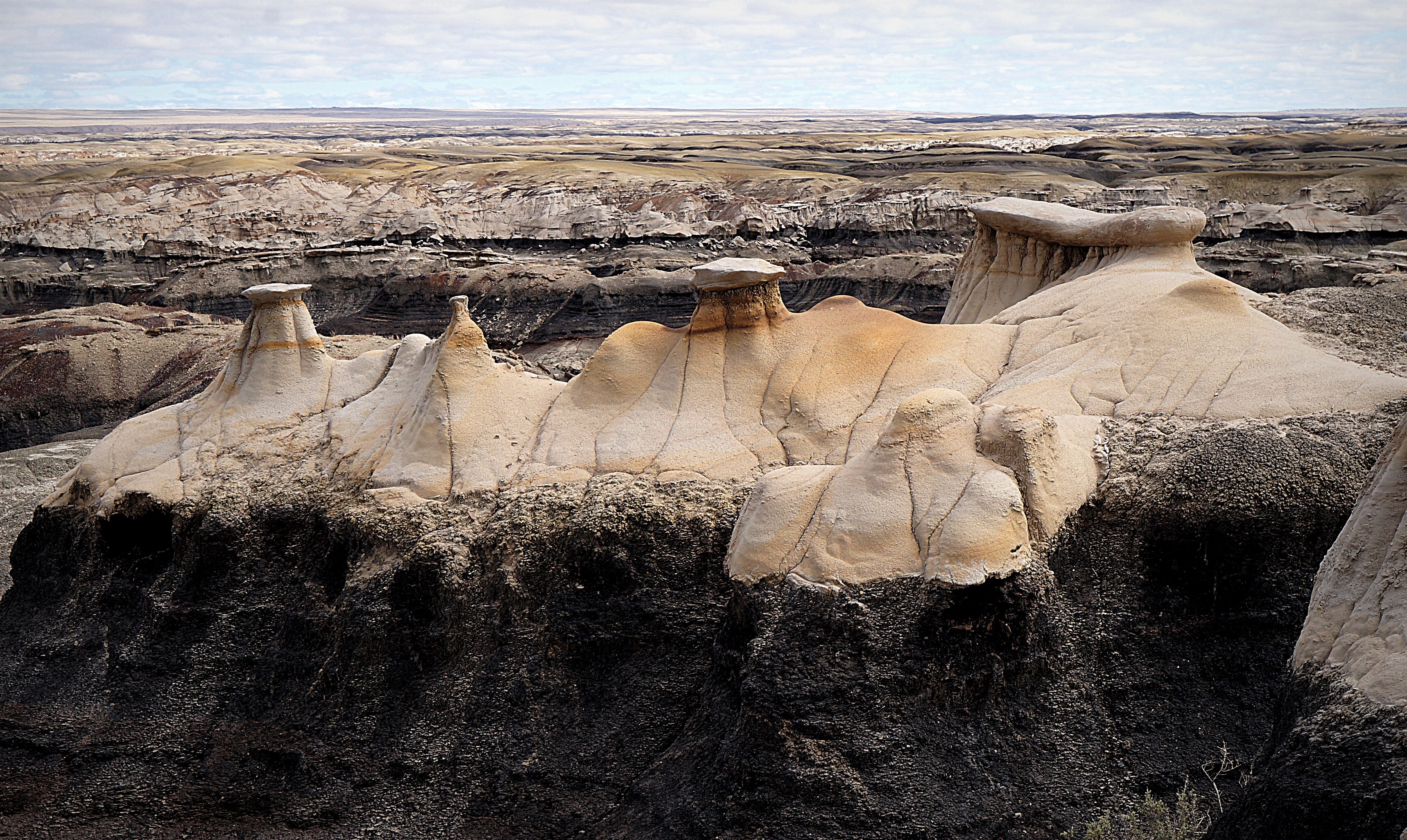 Het bizarre landschap van de Bisti Badlands in New Mexico, USA.