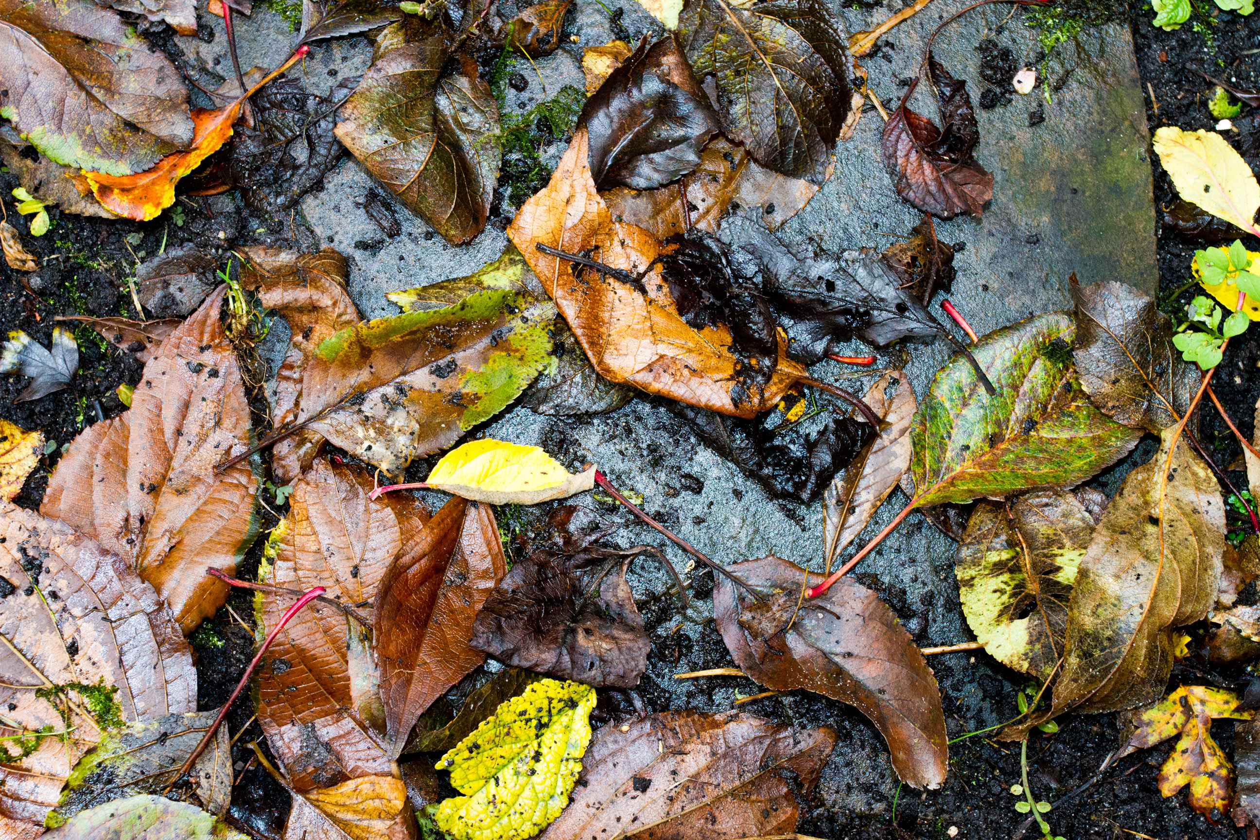 Het resultaat aan het einde van de herfst. Vers gevallen en vergane bladeren...
