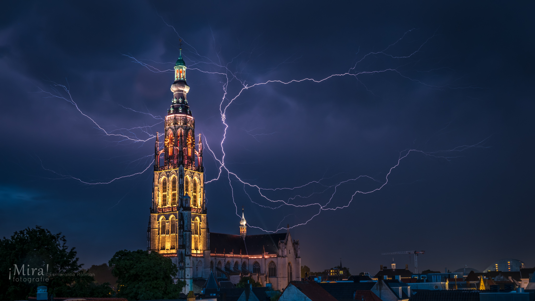 Bliksem bij de Grote Kerk in Breda