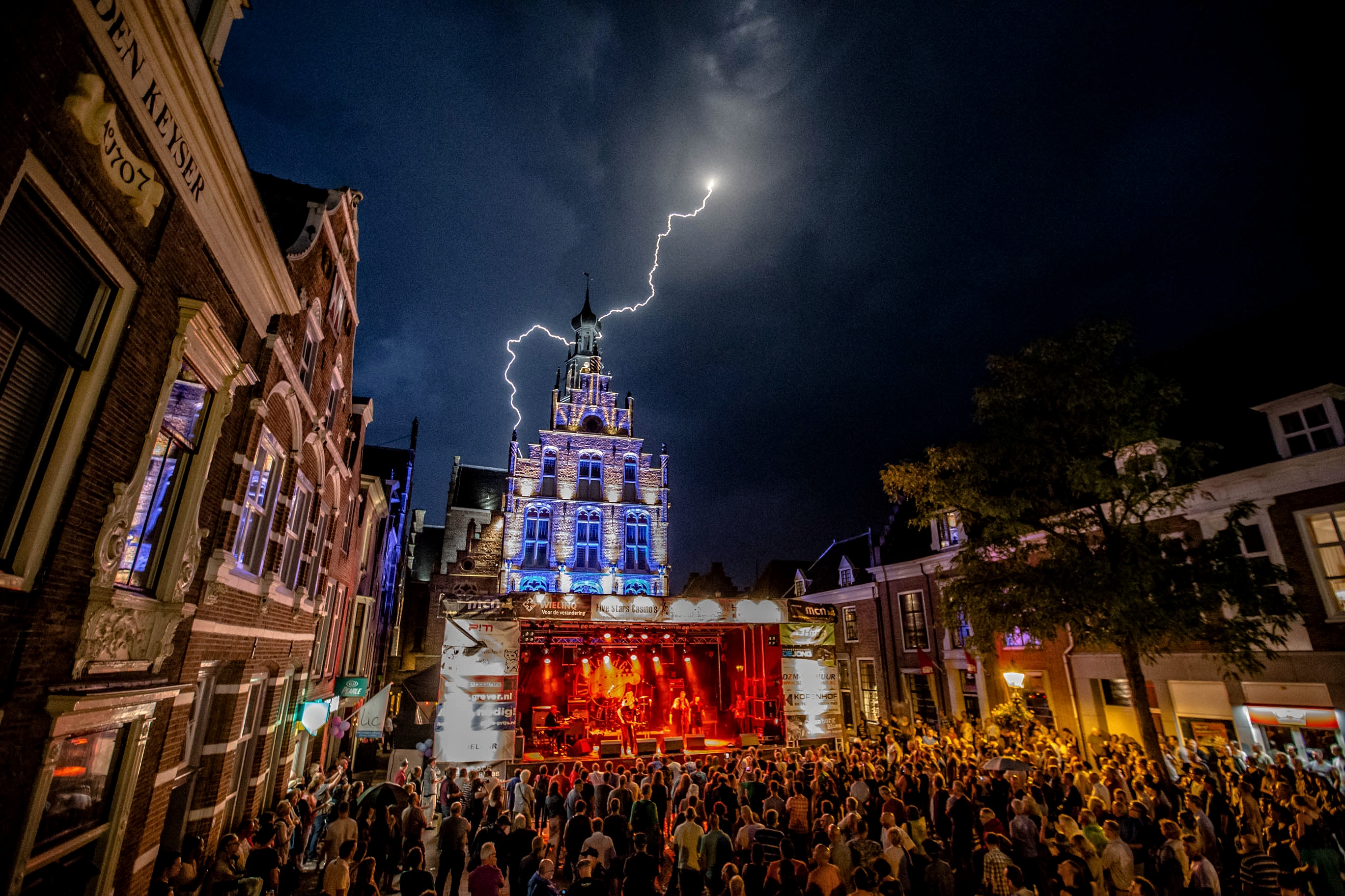 De enorme klap in Augustus 2016 Bliksem inslag op Culemborg Blues bij het optreden van PHIL BEE'S FREEDOM waardoor alles een half uur is stil gezet, om de schade te bekijken achter het podium en op het podium