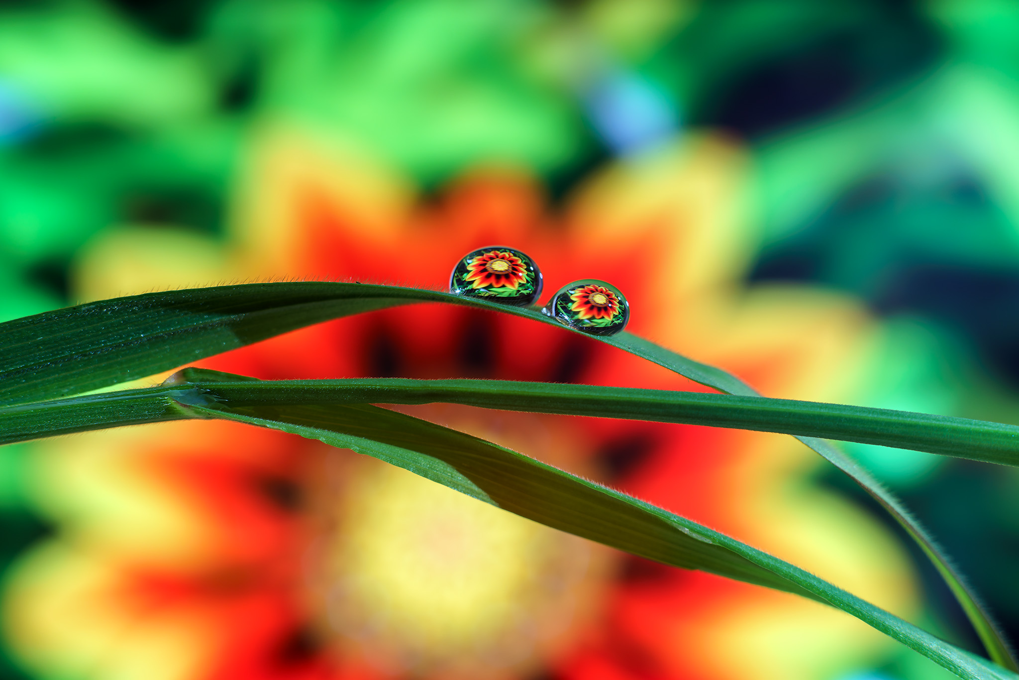 Bloem gevangen in waterdruppels