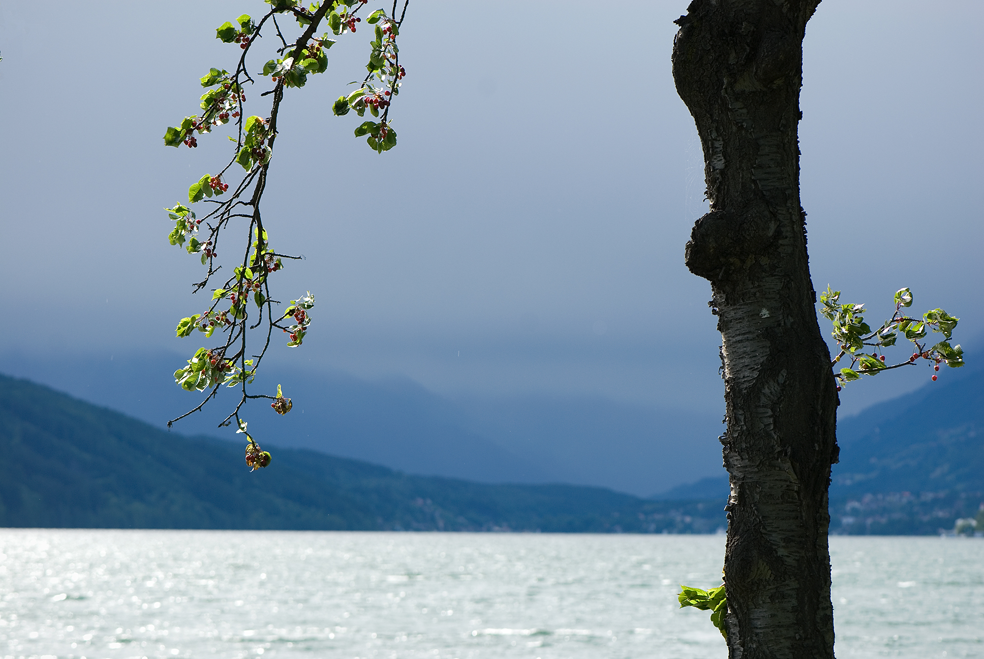 De lucht wás zo donker en de zon stond op de boom met de bloesem.