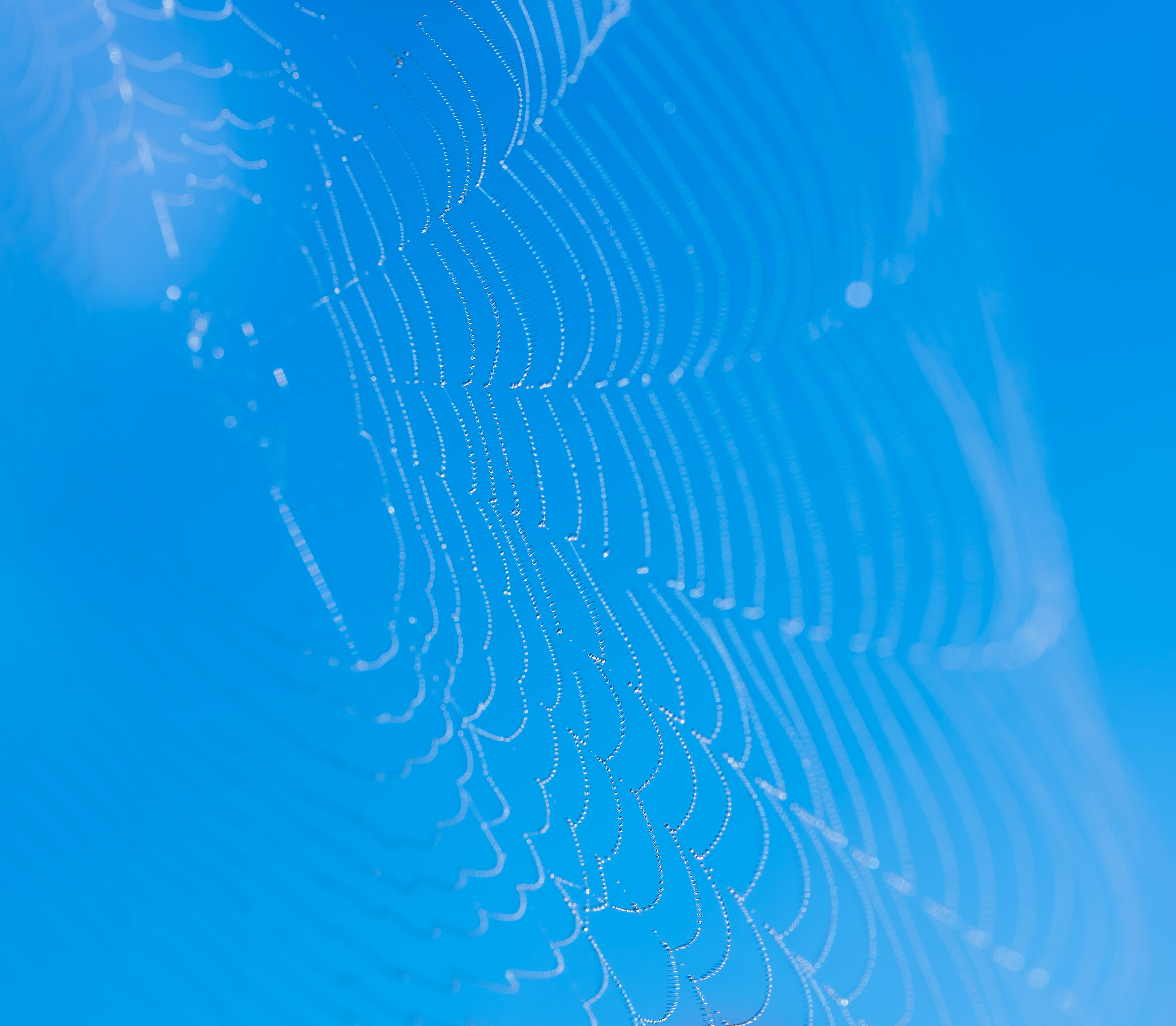 Plat op de grond om het web en de perfect blauwe lucht te pakken