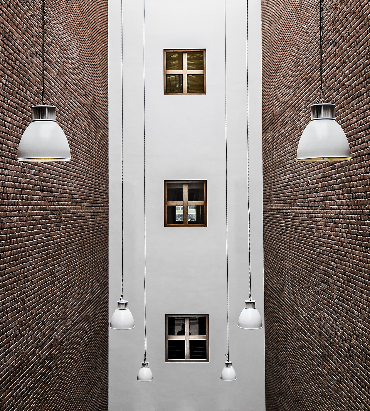 De monumentale trap, met hoge wanden van baksteen, doorsnijdt het gebouw als een lichtstraat van oost naar west. De trap werd ontworpen door de Italiaanse architect Aldo Rossi...
