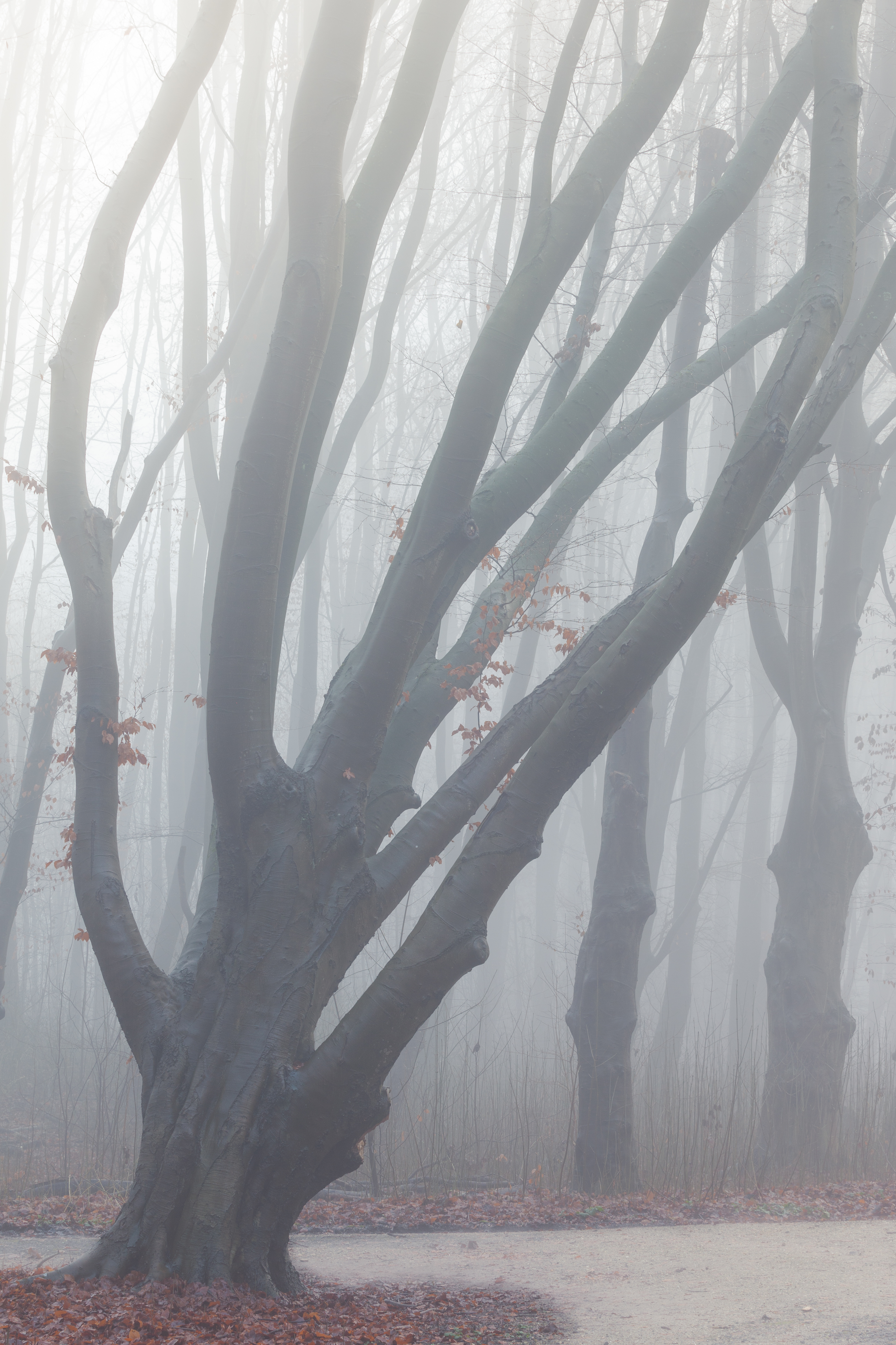 Op een mistige ochtend in het Amsterdamse bos