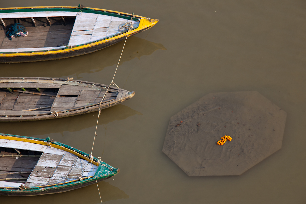 Bloemslinger op een plateau in de Ganges bij Varanasi.Ik heb hier een serie van gemaakt hoe dit plateau een rol speelt in het dagelijks leven.Tijdens de Moesson staat hij onder water, maar daarna valt hij droog en wordt intensief gebruikt