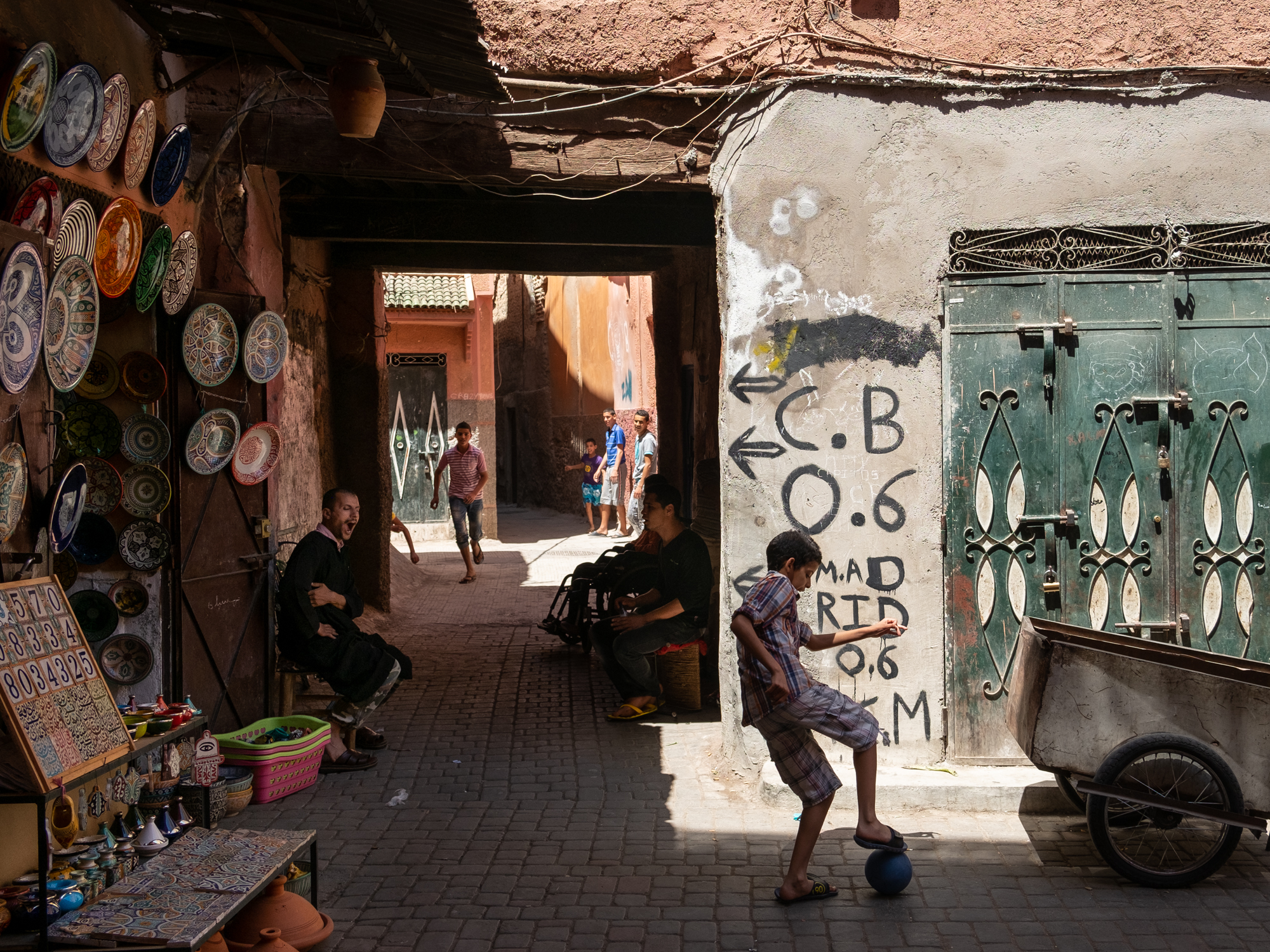 Boy playing soccer in Marrakech
