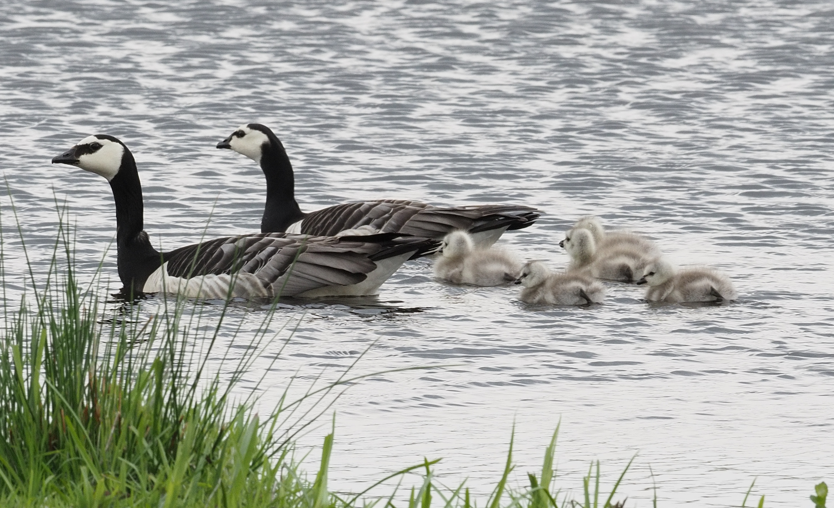 Brandganzen met jongen