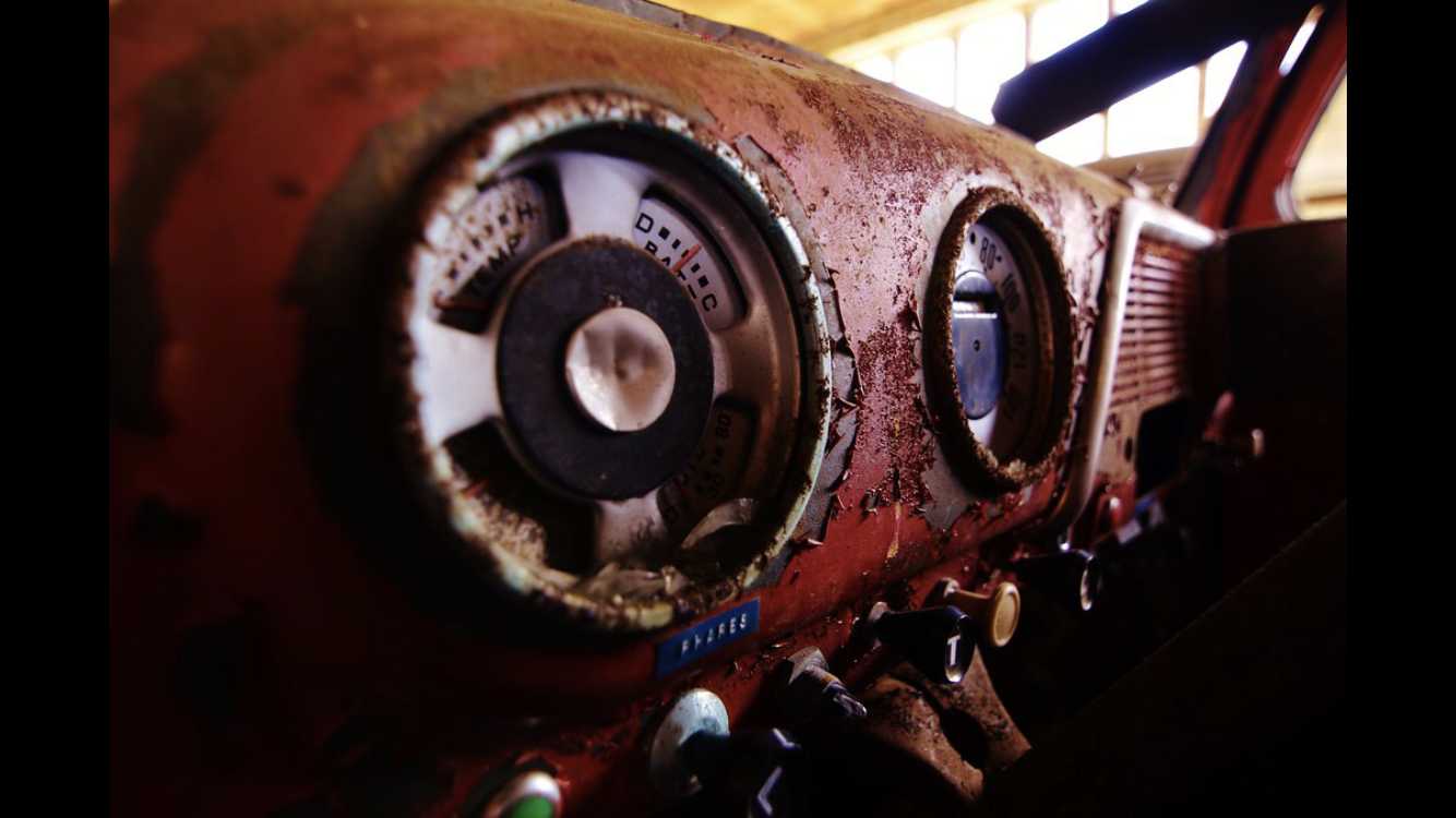 Deze foto is gemaakt in een verlaten garage waar nog heel wat juweeltjes staan.