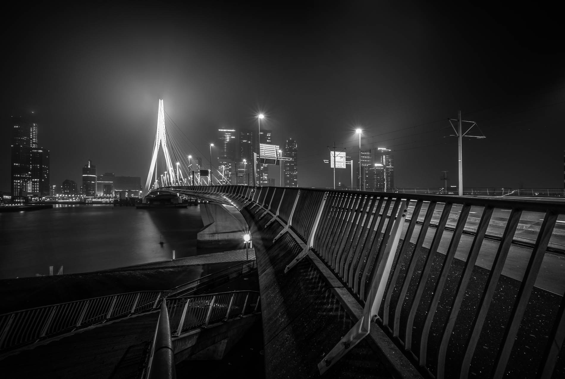 Een moody en donkere zwart-wit edit van een van mijn beelden uit de Rotterdam-serie