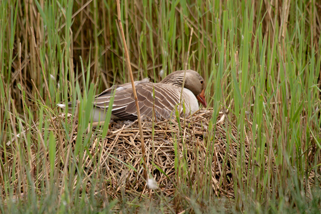 Tijdens een boot toch vanuit wormer kwamen we deze grauwe gans op het nest tegen, goed verstopt tussen het riet.