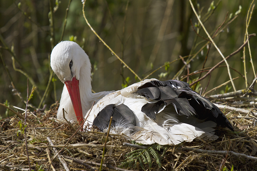 Ooievaar, op, nest, broeden, lente, eieren, aqua, zoo, leeuwarden