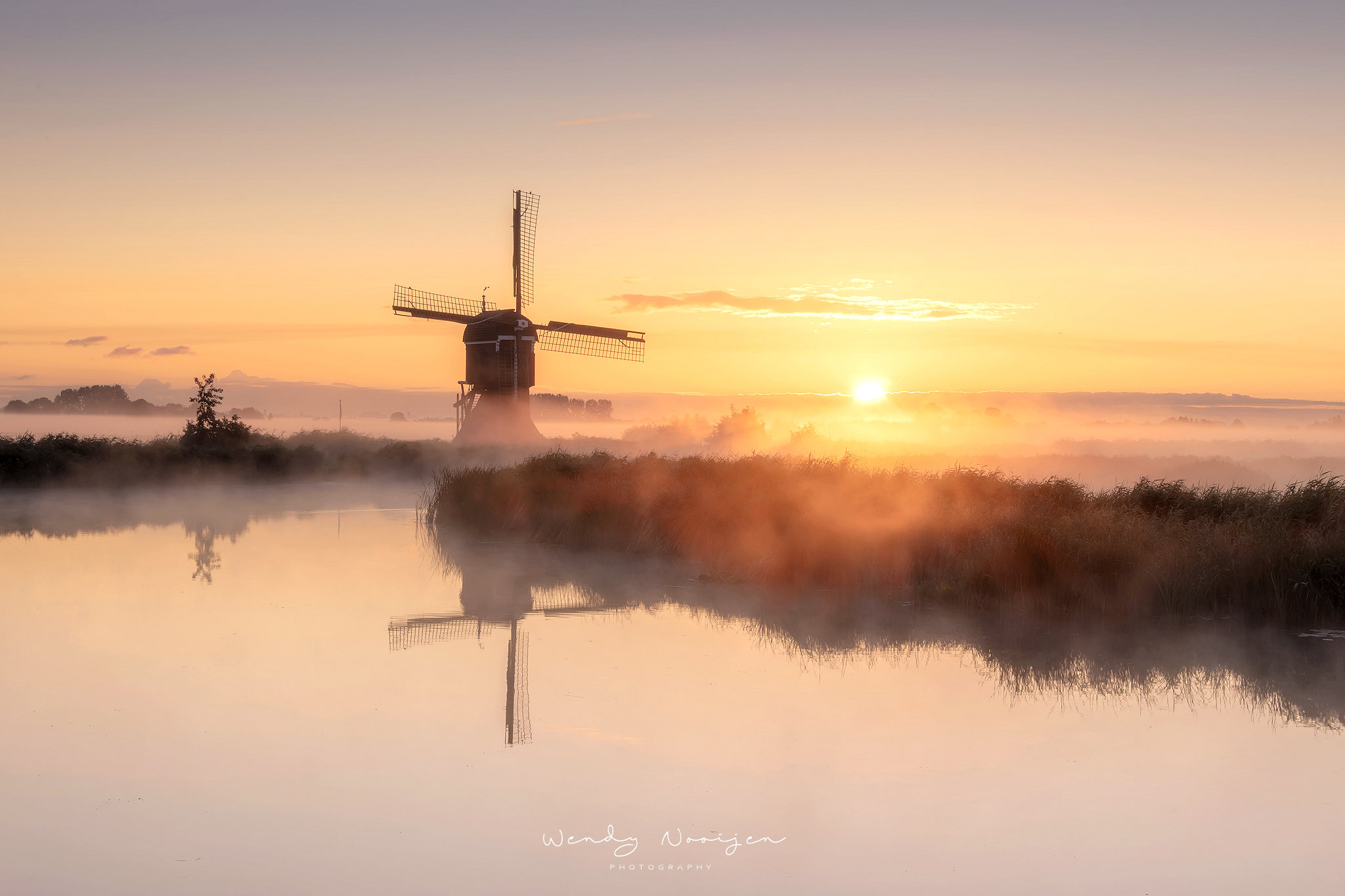 De Broekmolen in de mist