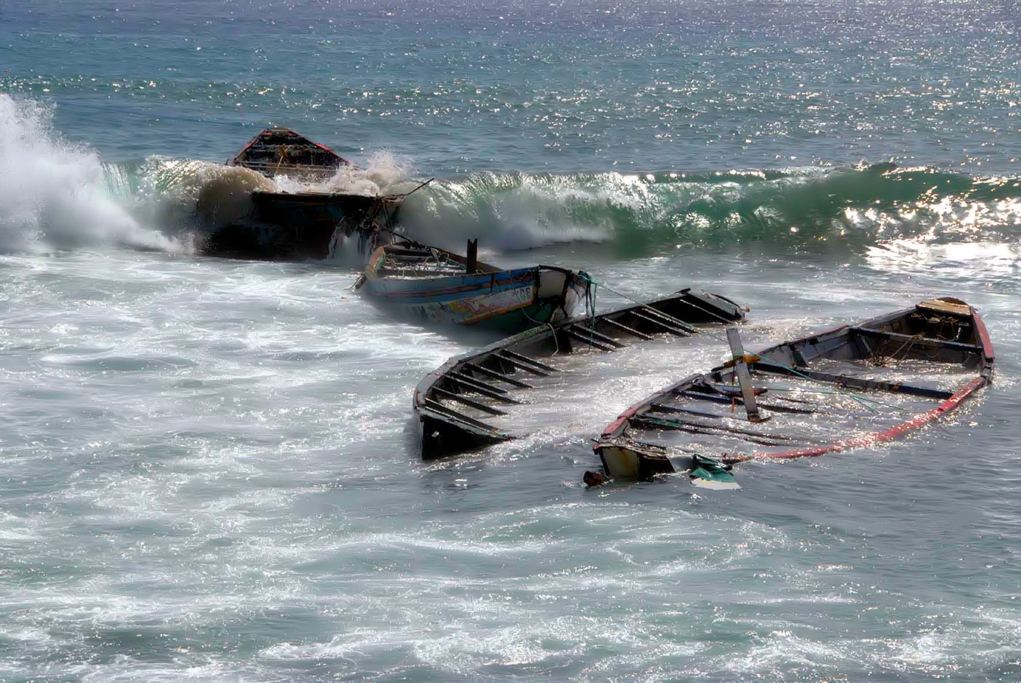 Half vergane bootjes van Senegalese bootvluchtelingen...