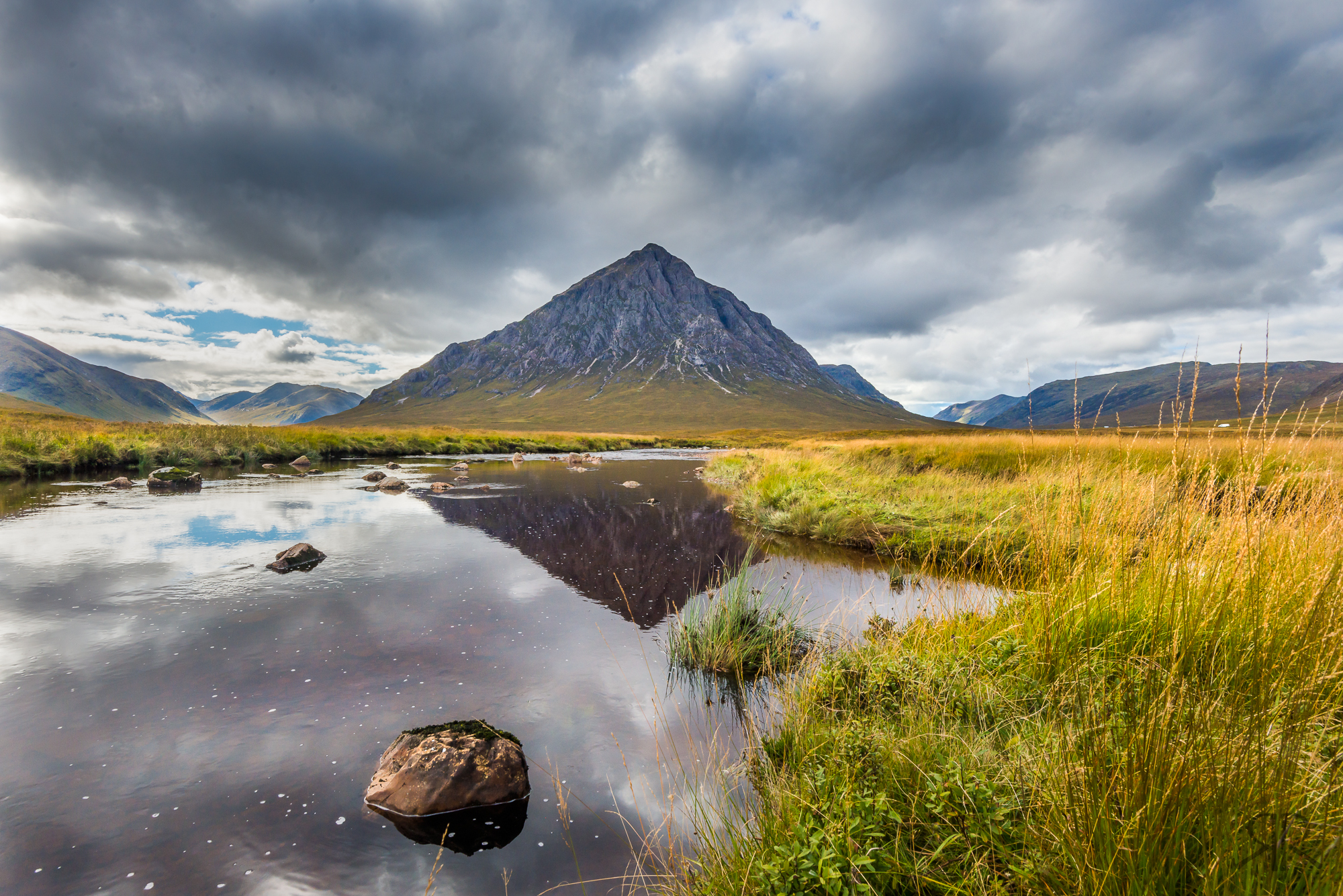 De iconische berg; de weg rechts ervan leidt naar Glencoe. De naam van de berg betekent wachter van Etive: de weg links van de berg leidt naar Glen Etive, en uiteindelijk naar Loch Etive. Glen Etive is een fotoparadijs op zich, in alle weersomstandigheden.