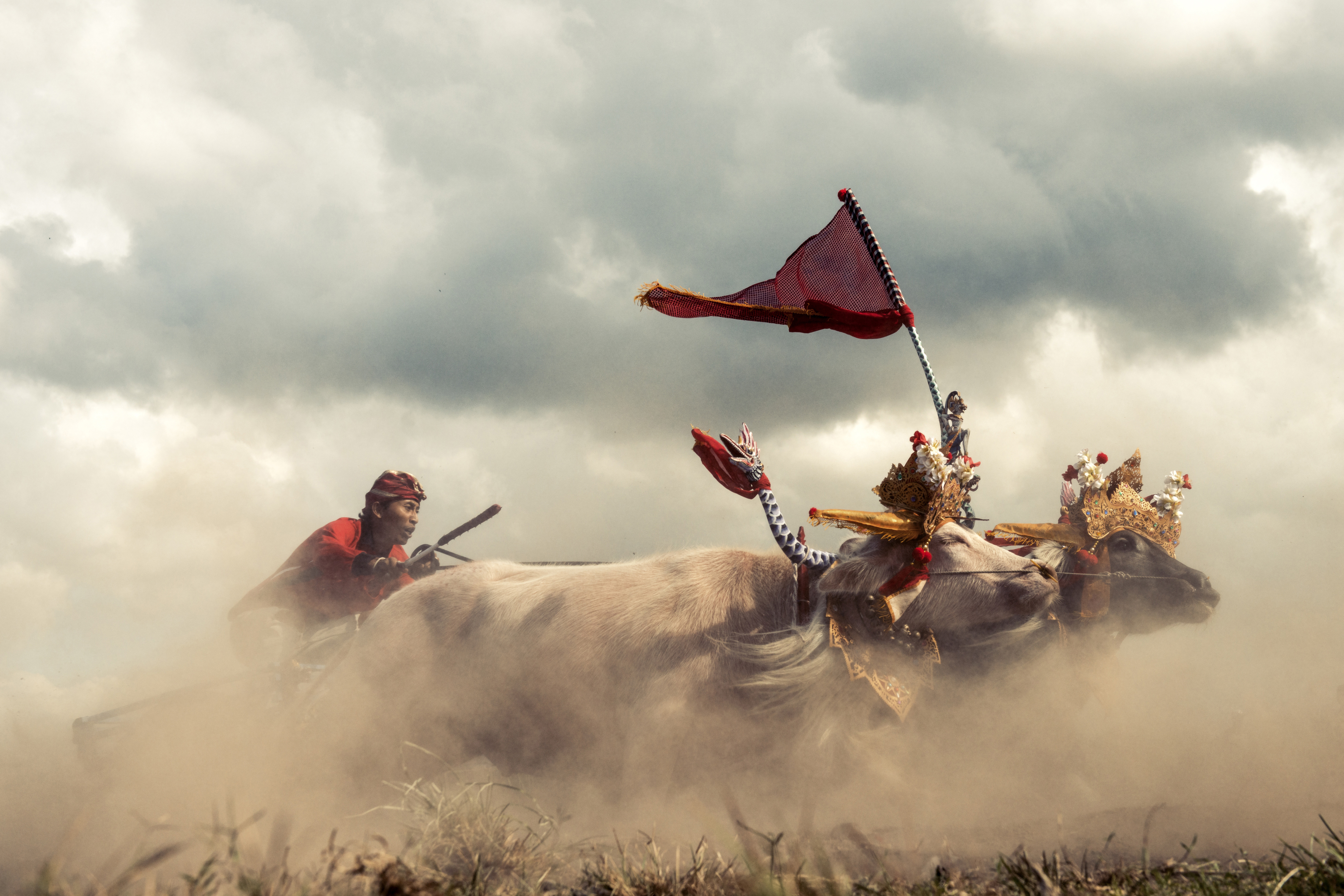 Traditionele buffalo race in West-Bali.