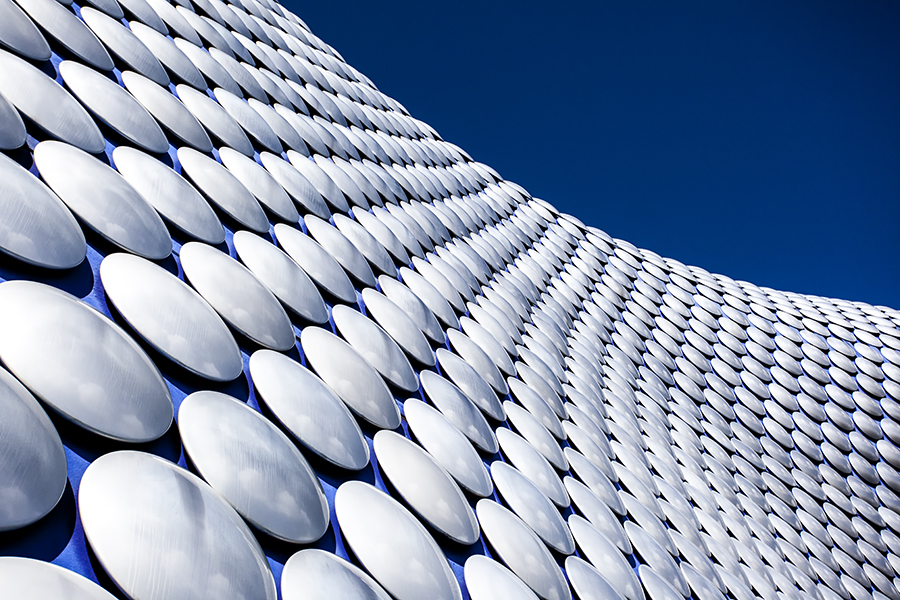 De buitenkant van de Bullring in Birmingham.
