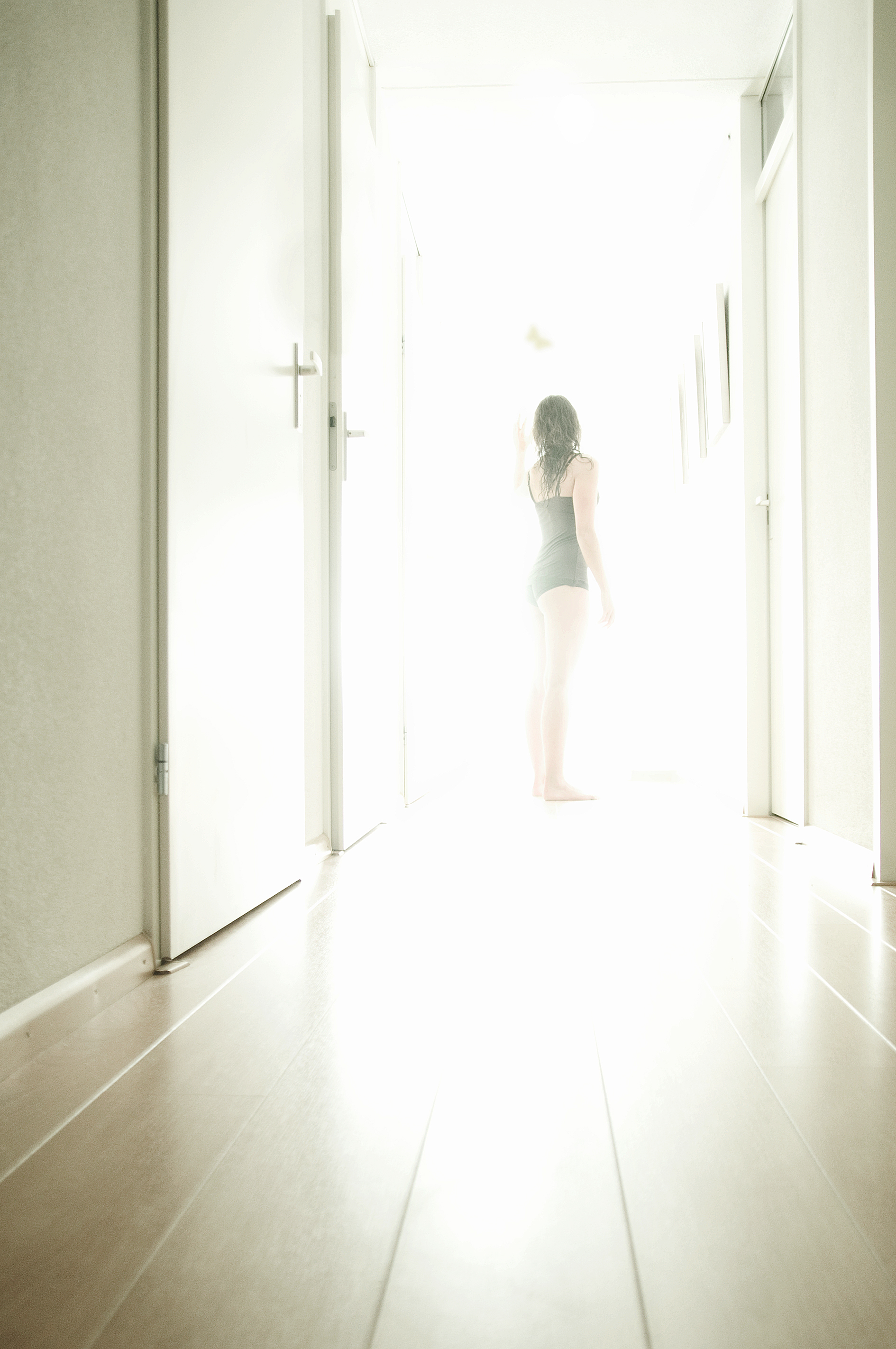 Foto 3 uit een serie over zelfmoord. Dit is de laatste foto. Het meisje loopt naar het licht.