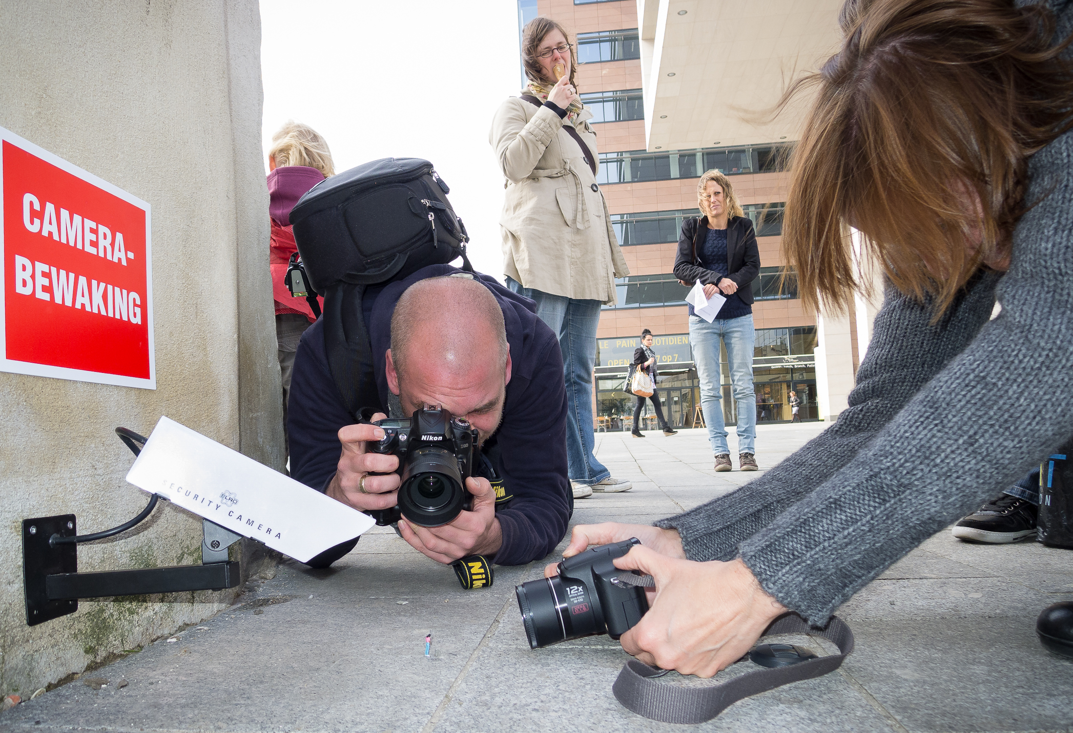 Bezoekers fotograferen een werk van de kunstenaar Slinkachu in Antwerpen.
