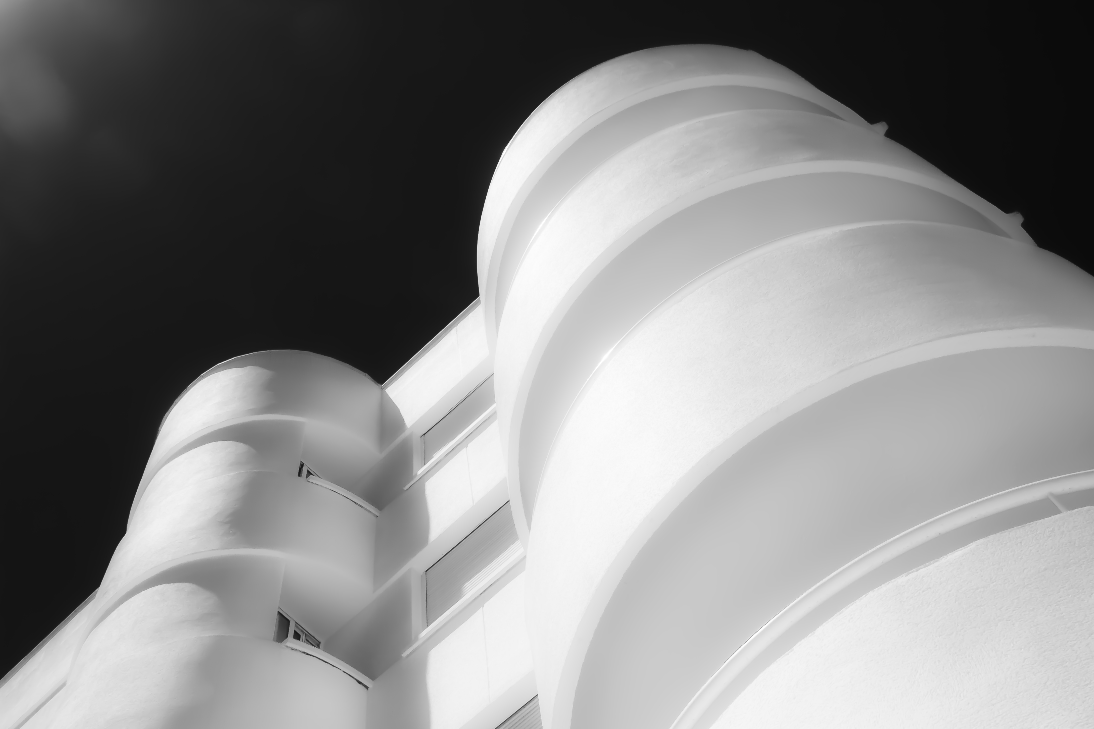 is eigenlijk een raw foto, bewerkt met hoog contrast en uitgesproken wit en zwart. omgezet naar 1080p jpg. en uiteraard onevenheden op het wit gedeelte gewist om de gaafheid van het gebouw te versterken