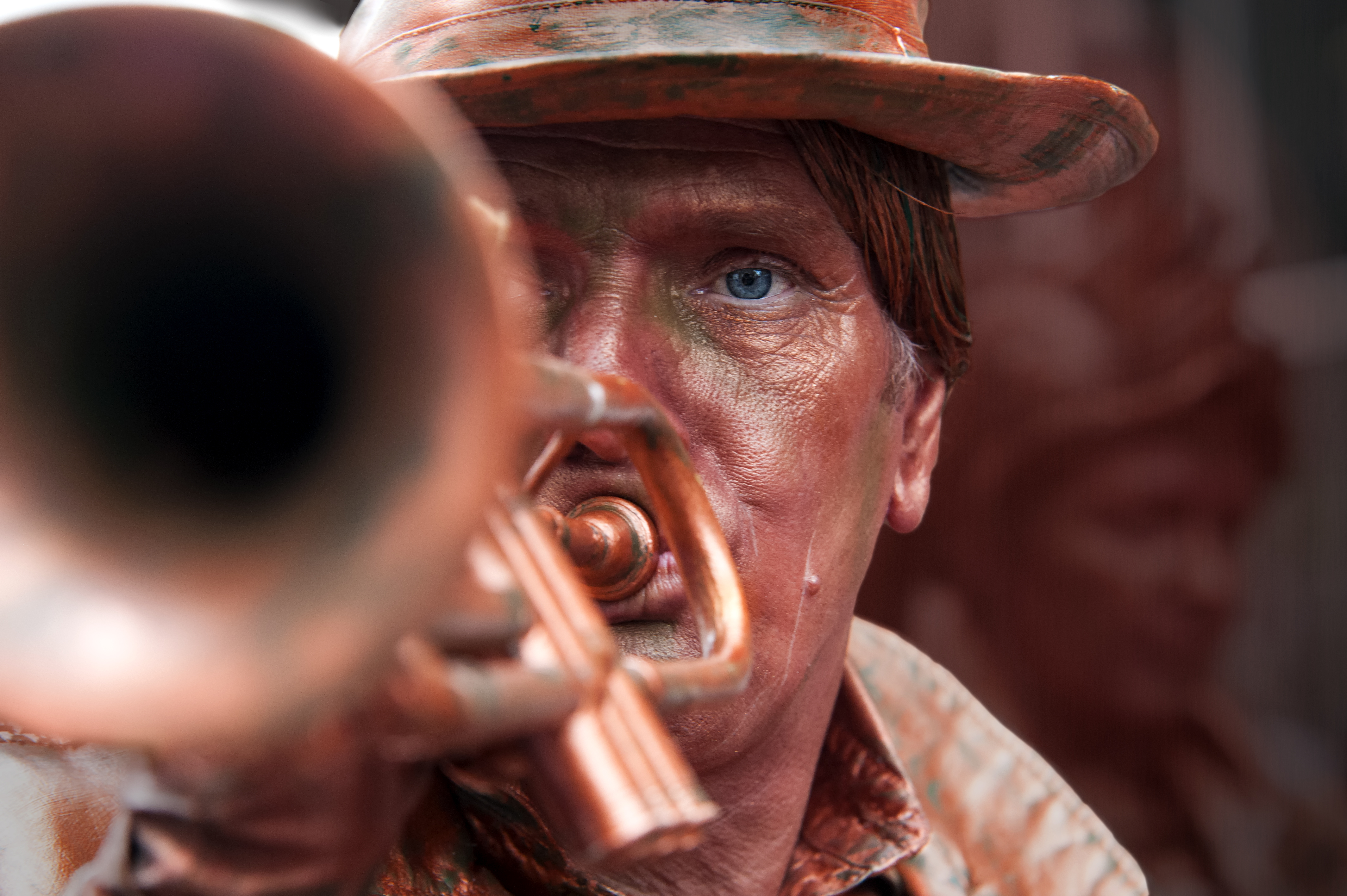 Trompet-/Mimespeler in de carnavalsoptocht van Oldenzaal