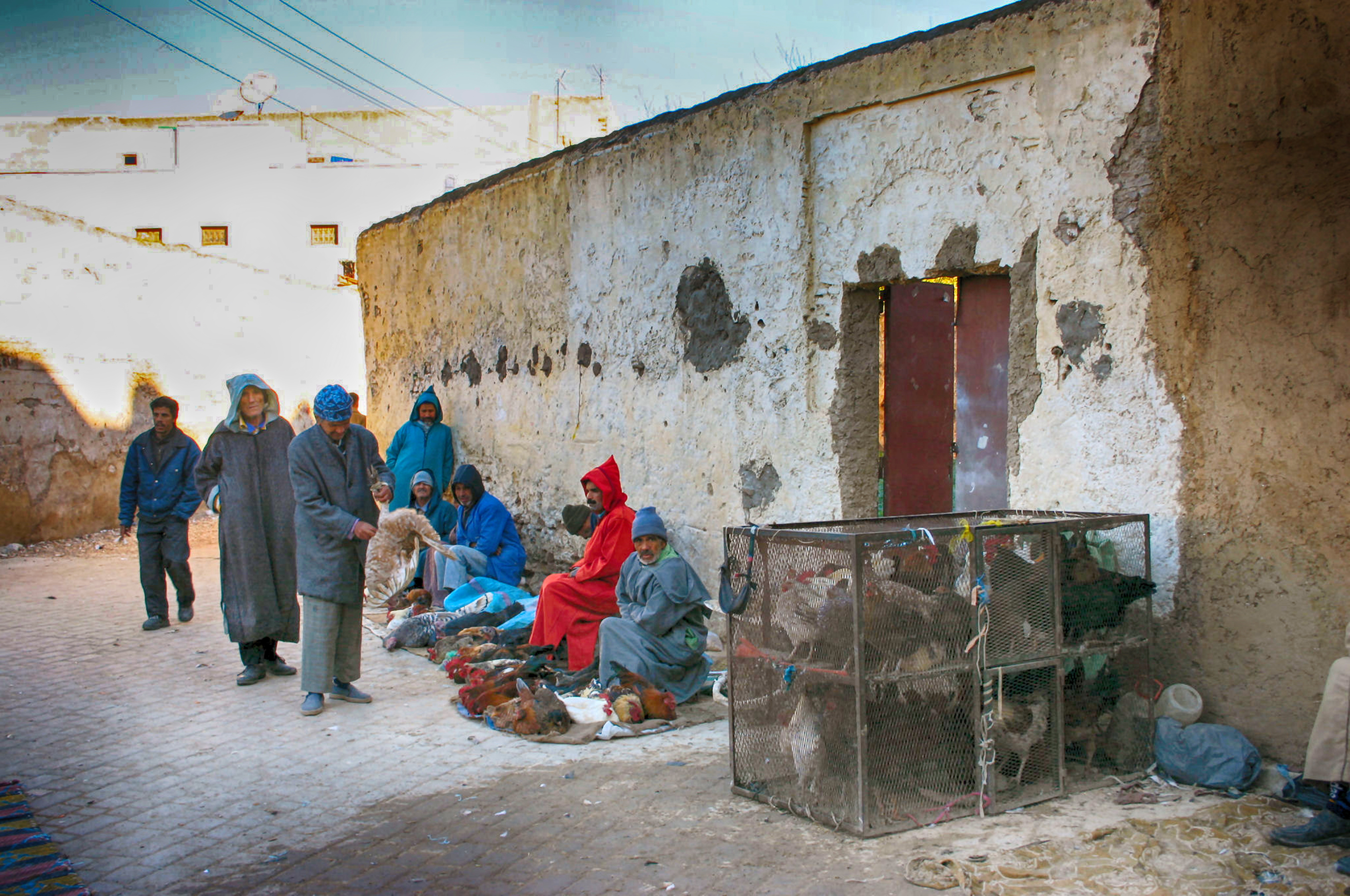 Kippenhandelaars in Fès, Marokko
