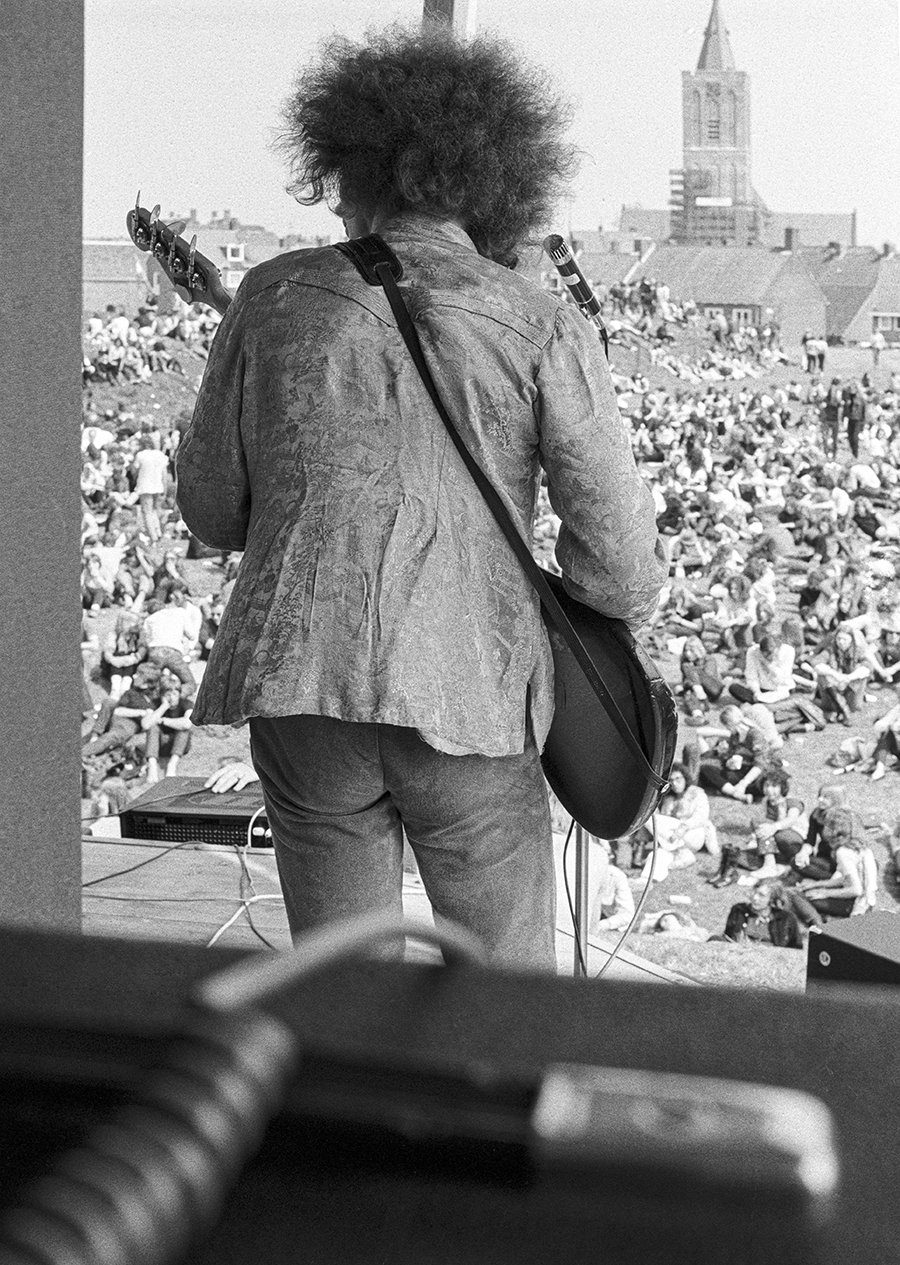 Gitarist Stan Web van de band Chicken Shag soleert tijdens popfestival Veertien Uur Puur te Naarden op 5 mei 1970
