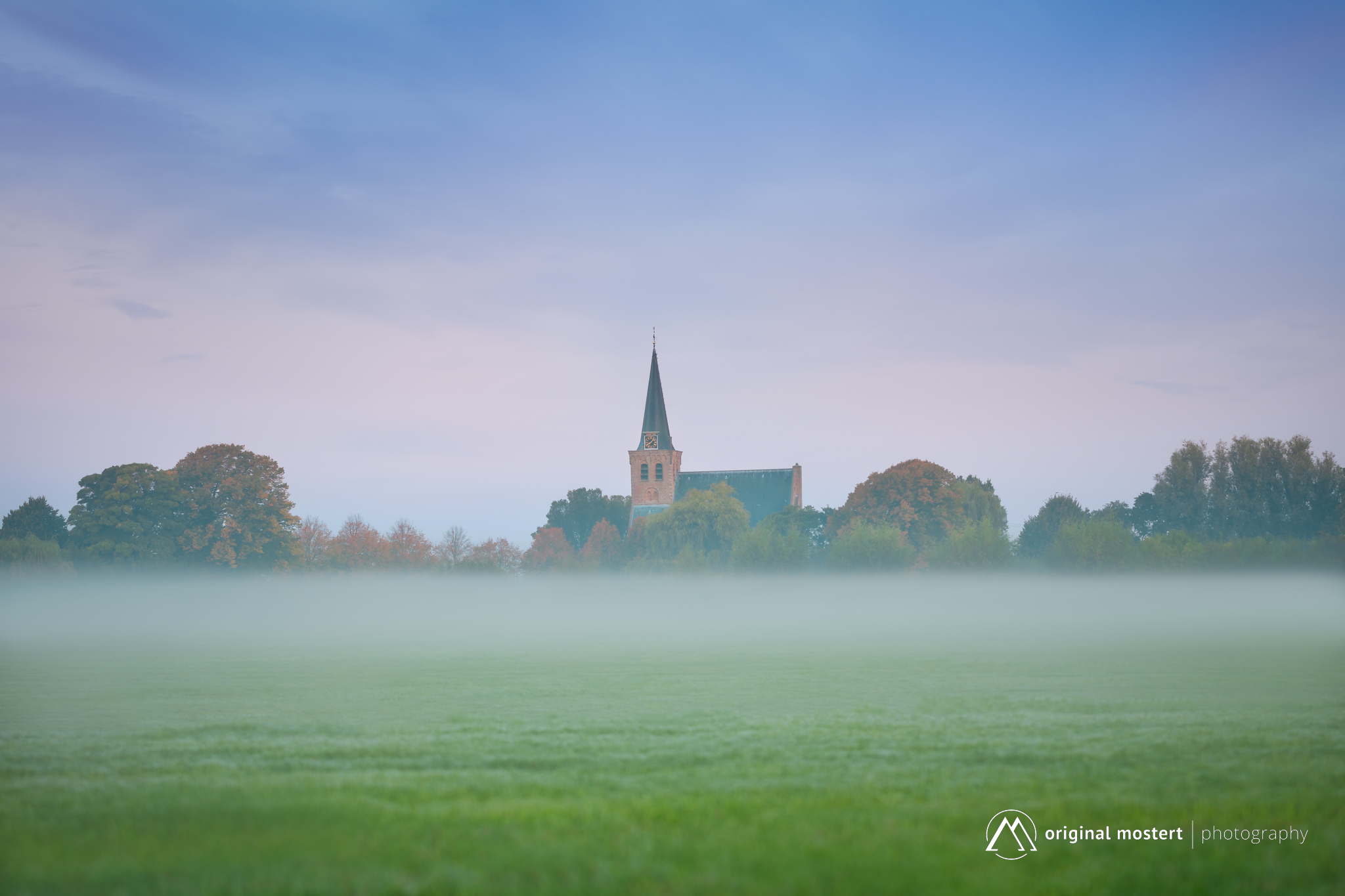 Church and village hiding in the mist...